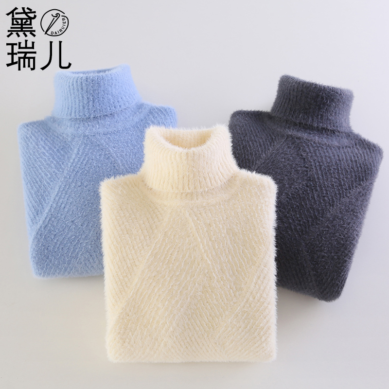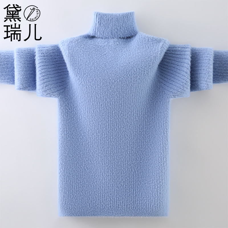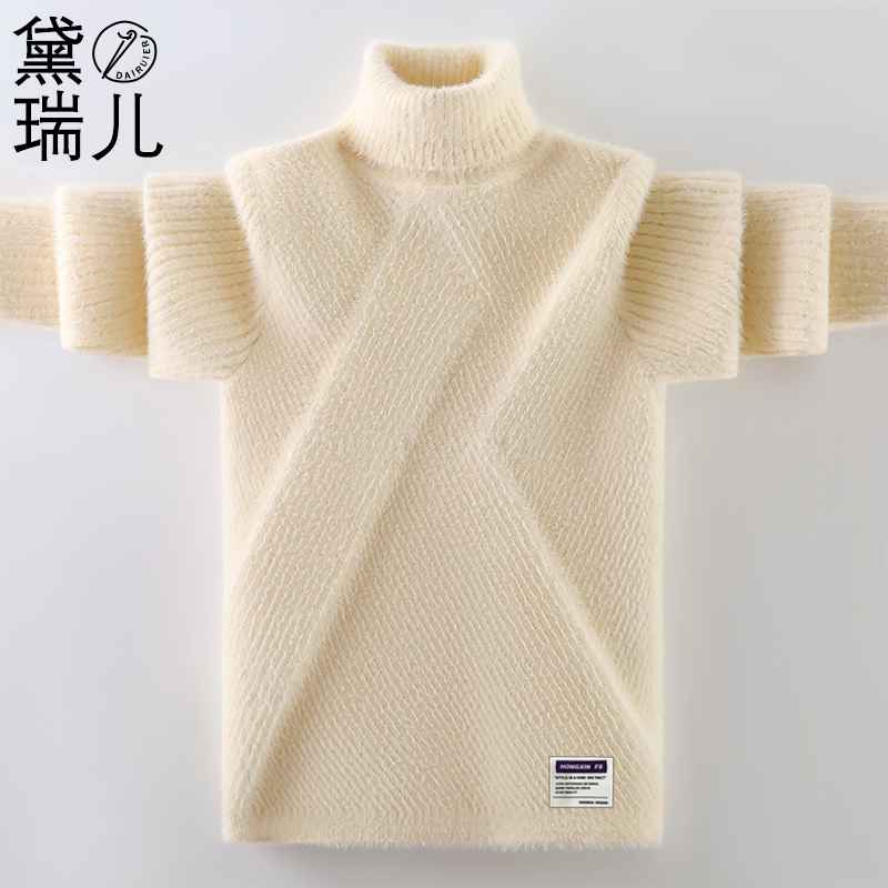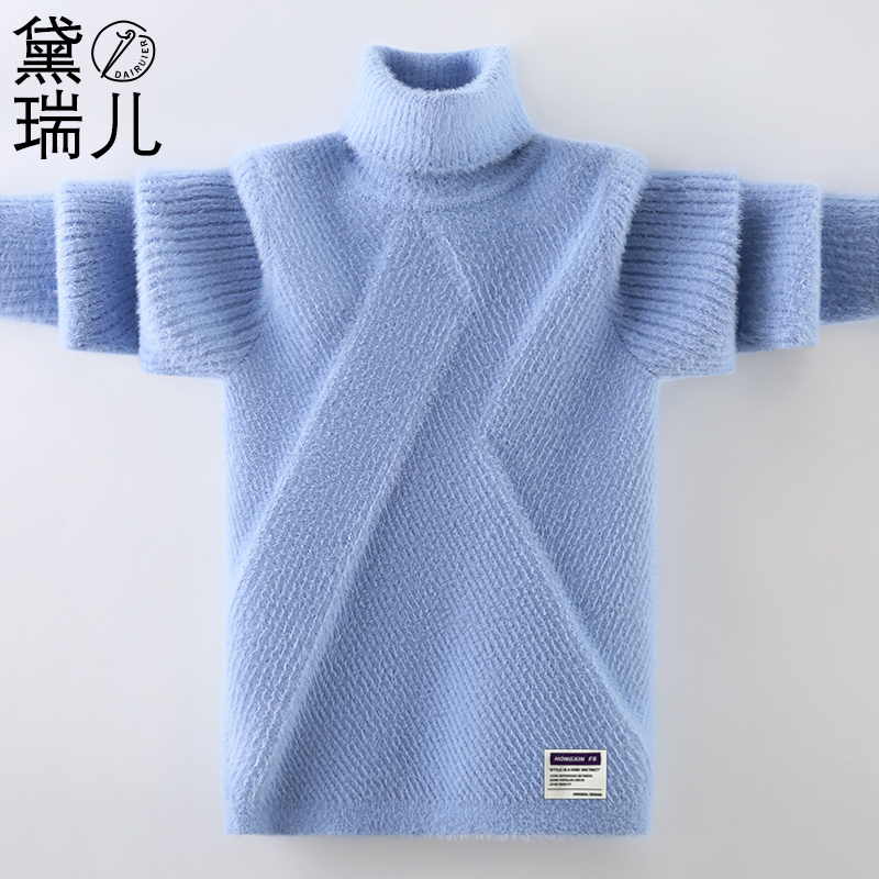 男童毛衣高领套头2024秋冬新款儿童水貂绒针织衫中大童加绒加厚潮