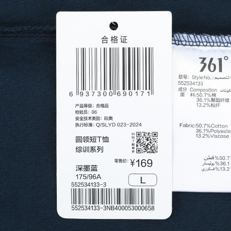 361度男款棉感运动短袖新品2025秋夏冰感半袖吸汗T恤衫55Z534133