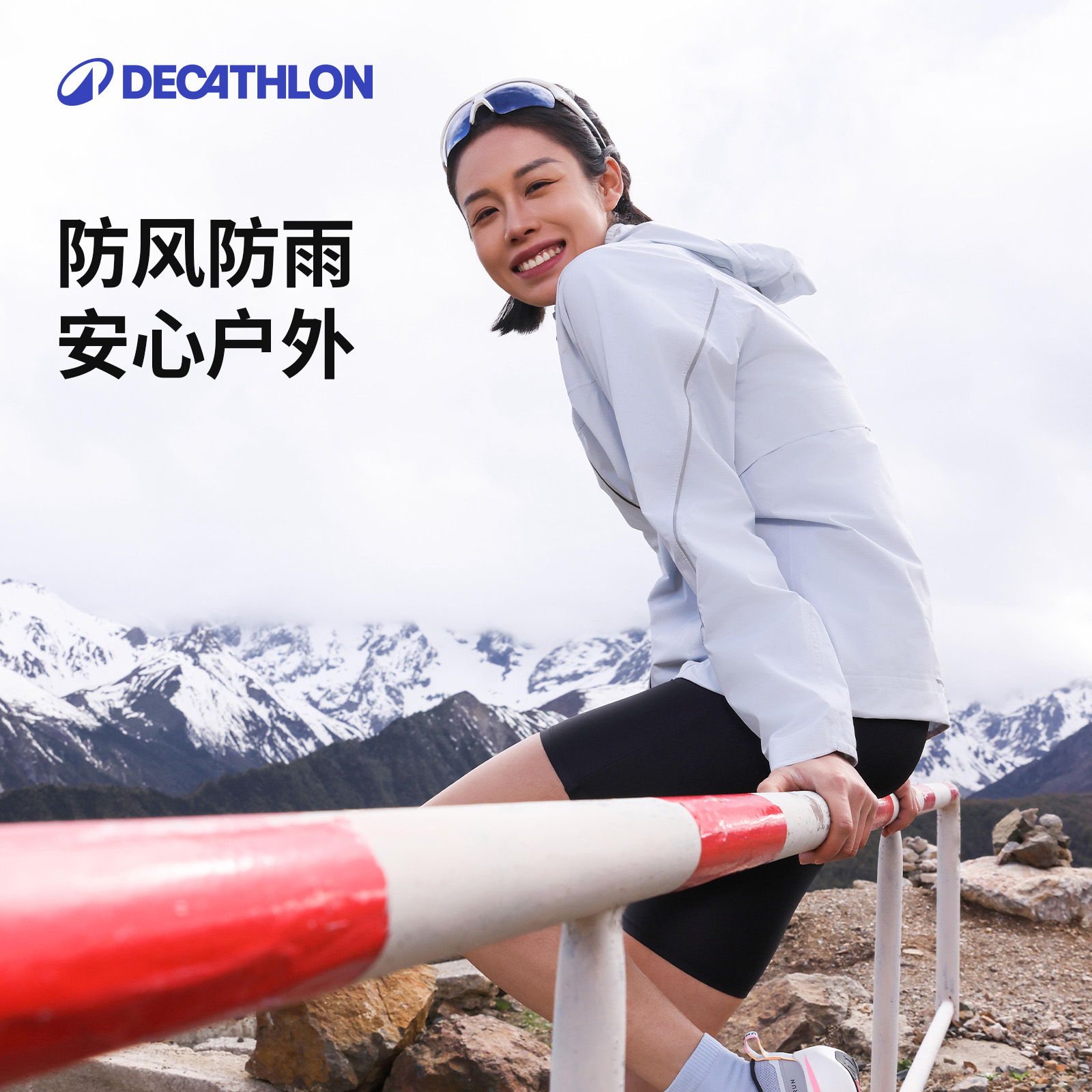迪卡侬越野跑夹克女秋季户外防风防雨短上衣拉链口袋便携折叠SAX1