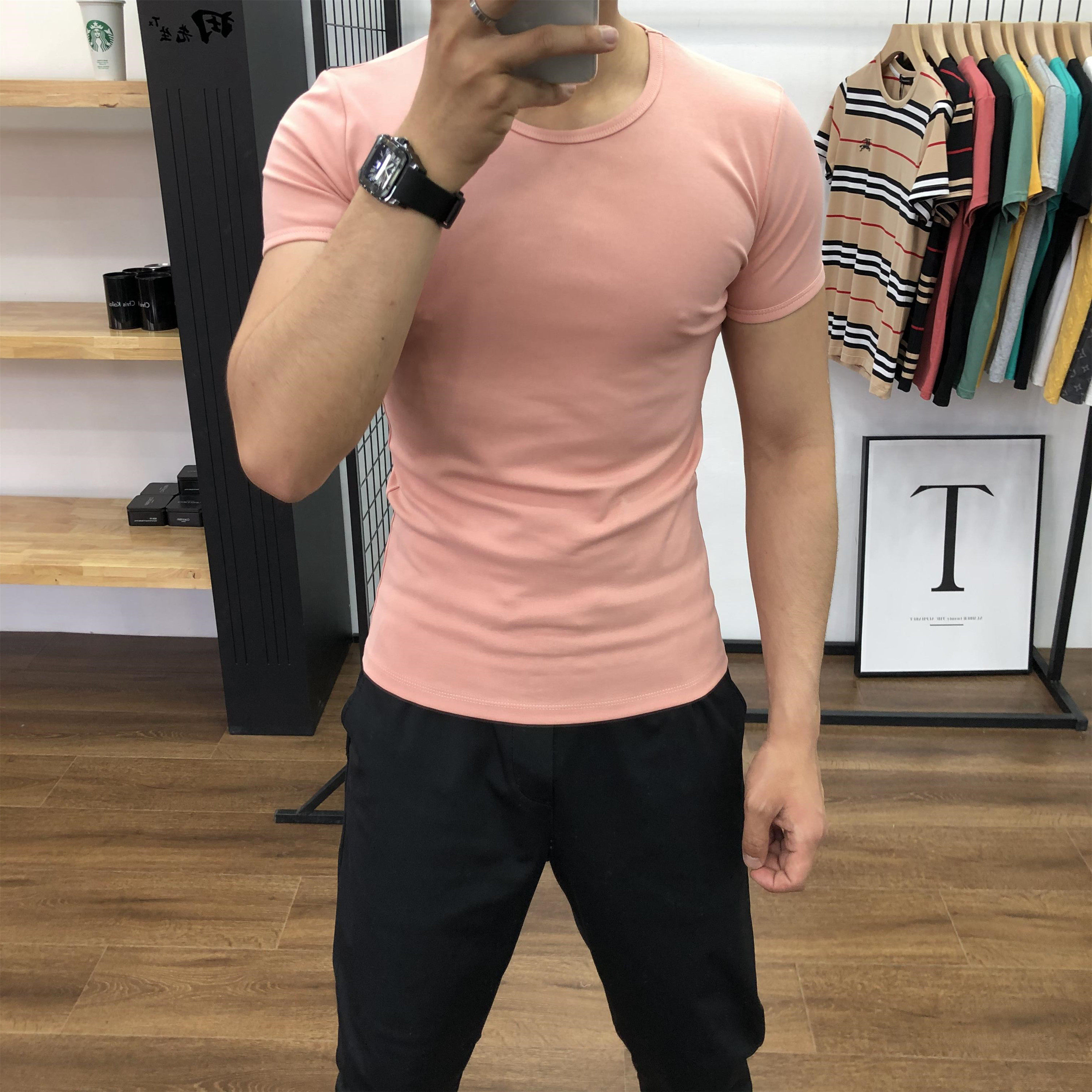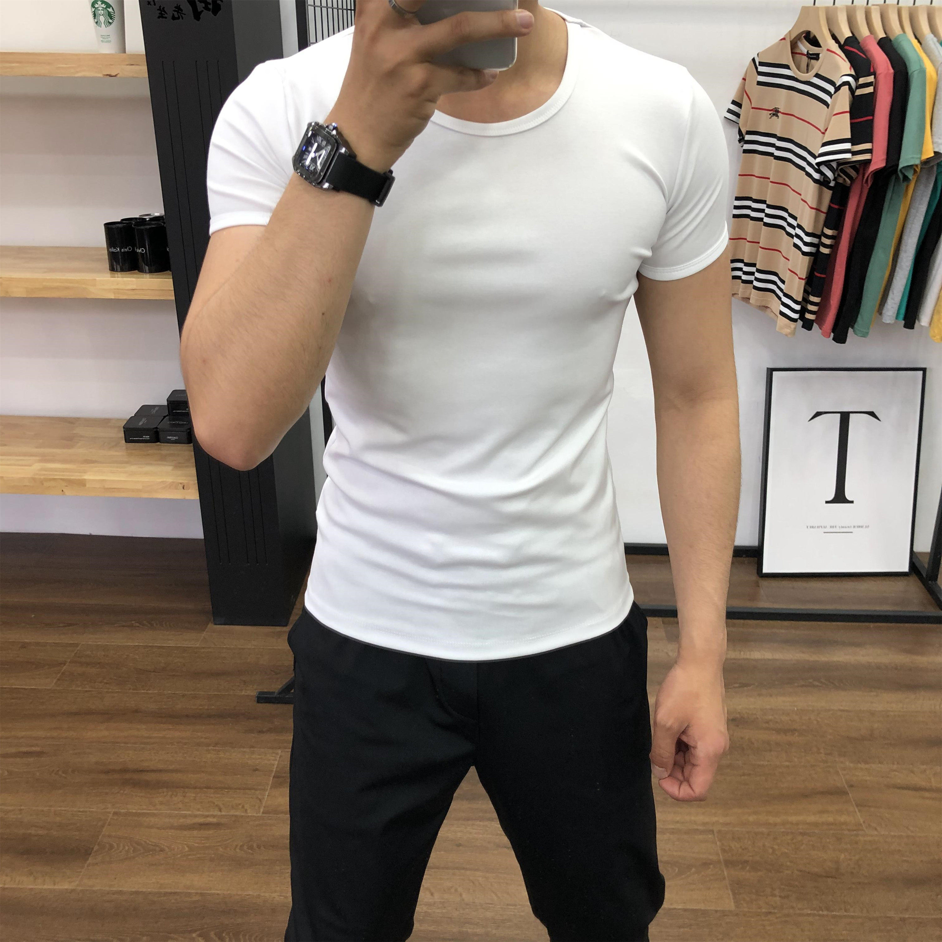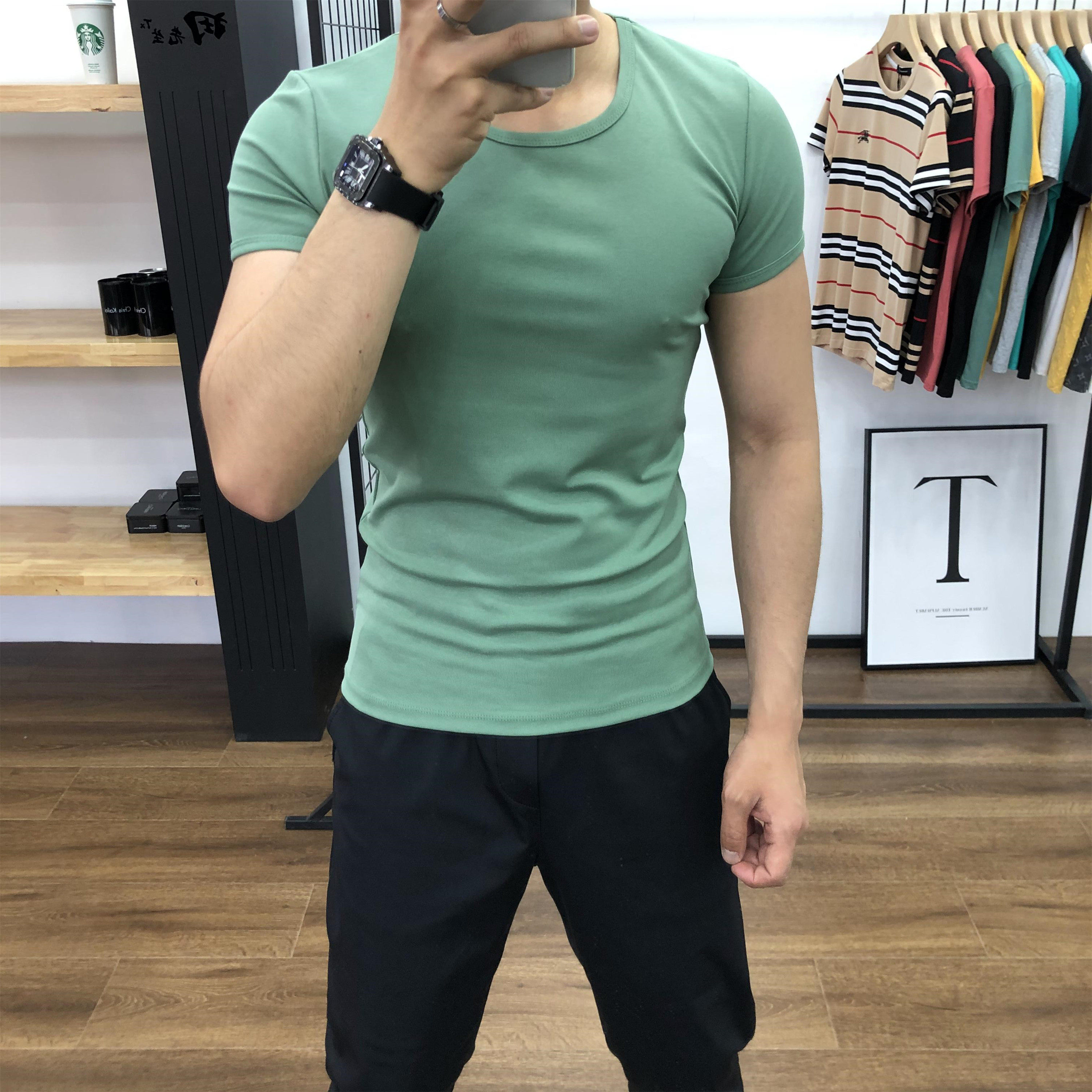 夏季男士t恤打底衫上衣短袖圆领修身运动四季纯色健身型男新疆棉