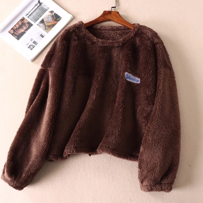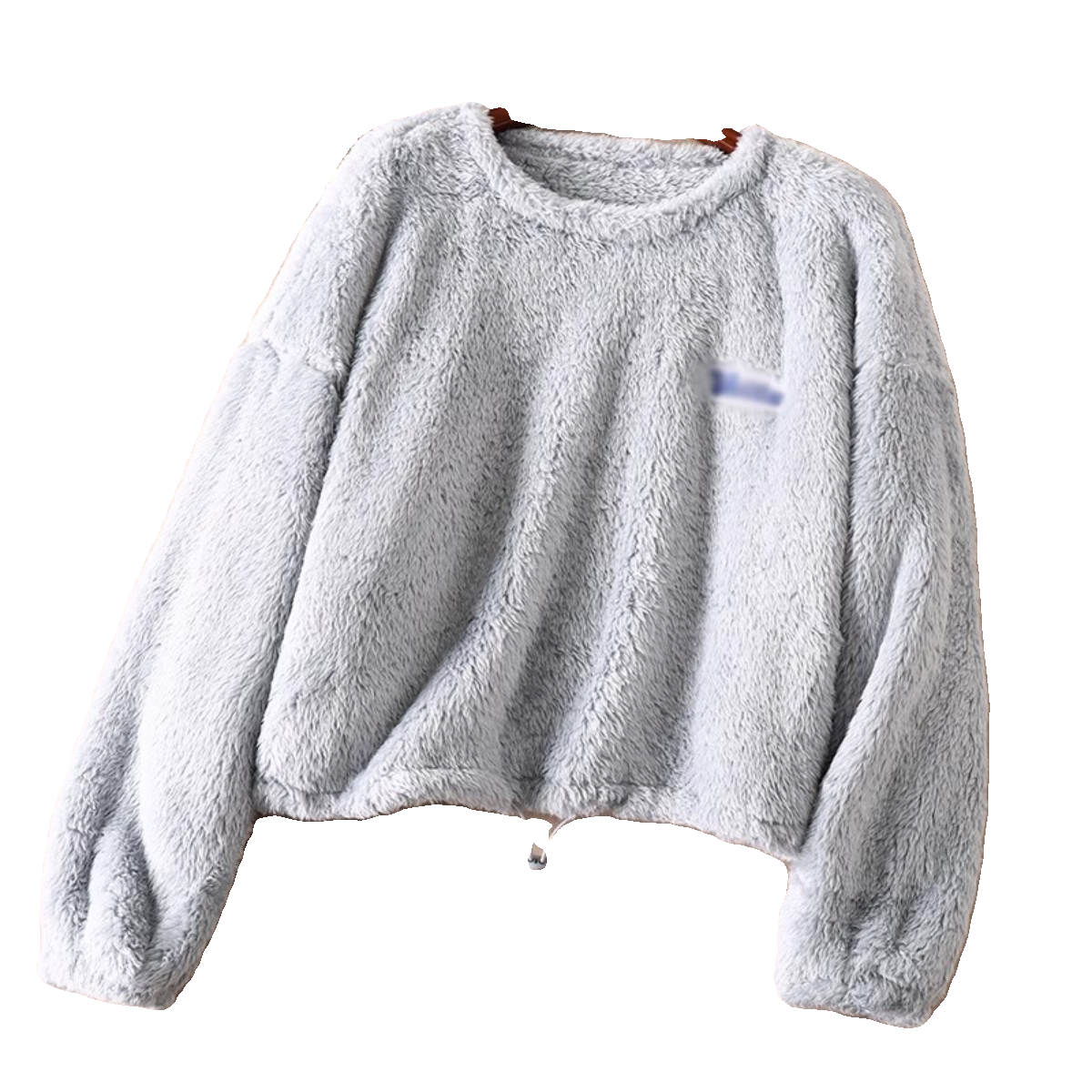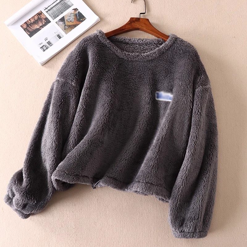 双面绒加厚套头休闲卫衣女冬韩版时髦短款收腰宽松珊瑚绒衫WA3152