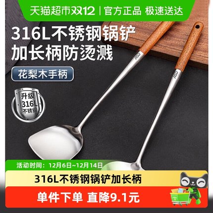 爱仕达锅铲316L不锈钢加厚炒菜铲子勺子厨房家用厨具铁铲汤勺