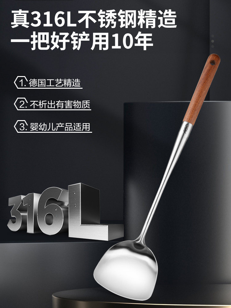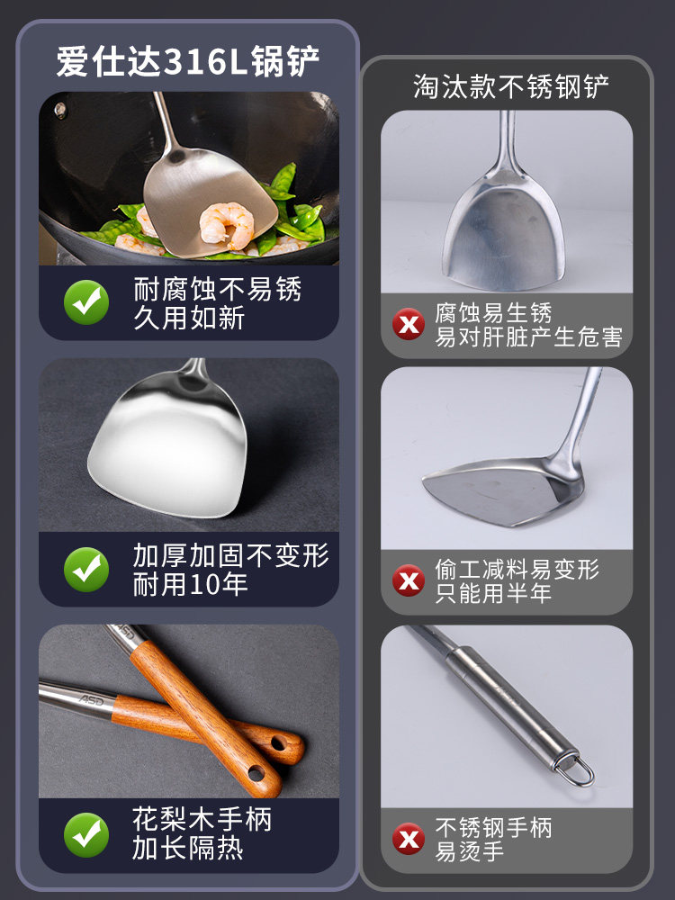 爱仕达锅铲316L不锈钢加厚炒铲子