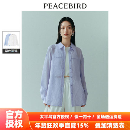 太平鸟 仿麻感长袖衬衫2025秋季新款女士绣花时尚衬衣薄上衣百搭