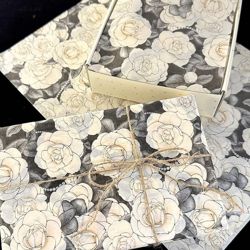 高颜值ins山茶花卉雪梨纸 衣服装礼品包装纸出物打包飞机盒内衬纸