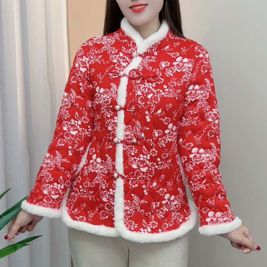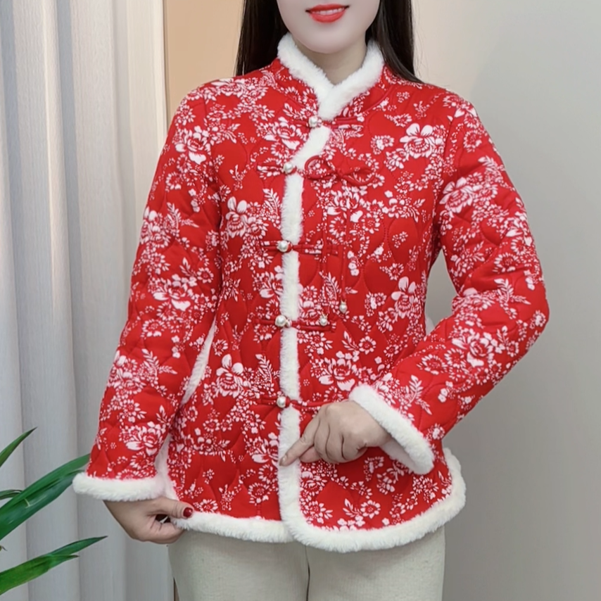 中式国风唐装短款棉服加棉加厚保暖外套2025冬年轻版小碎花棉袄女
