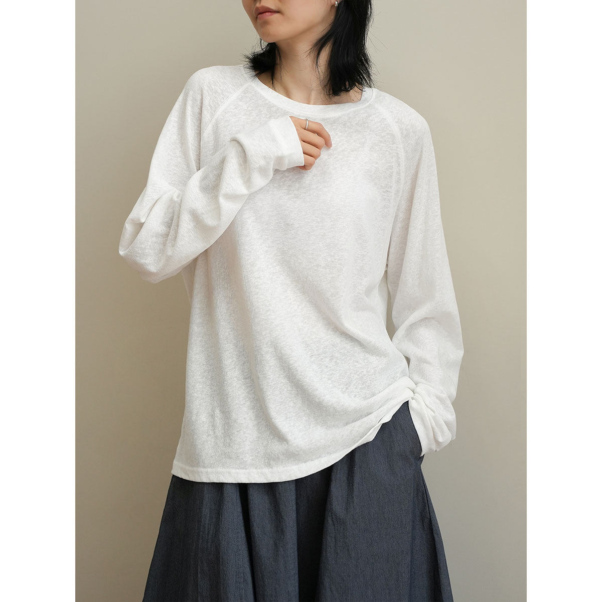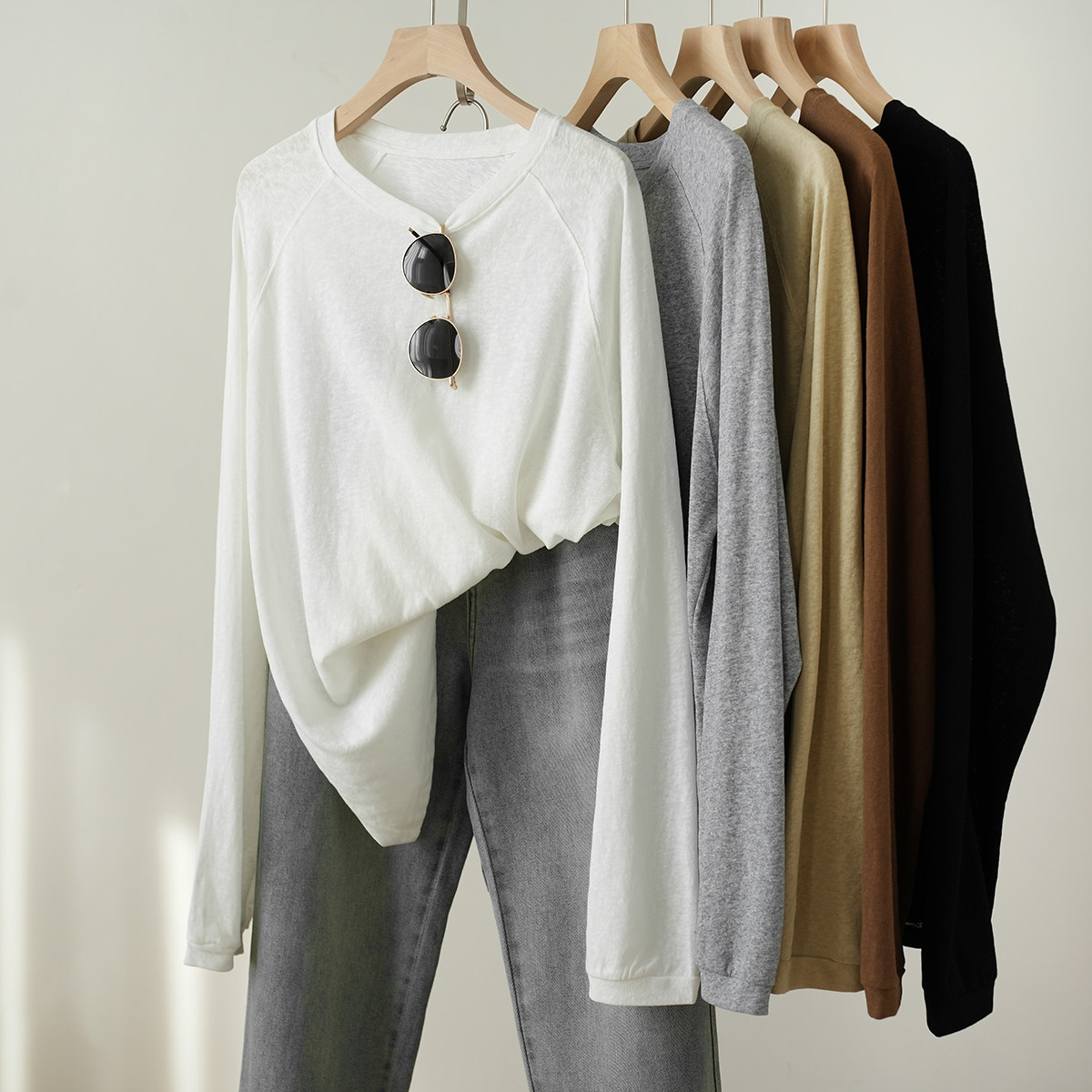 松弛感 女士长袖T恤 雪花棉 粗棉纹理插肩袖打底 春秋款 山东网店