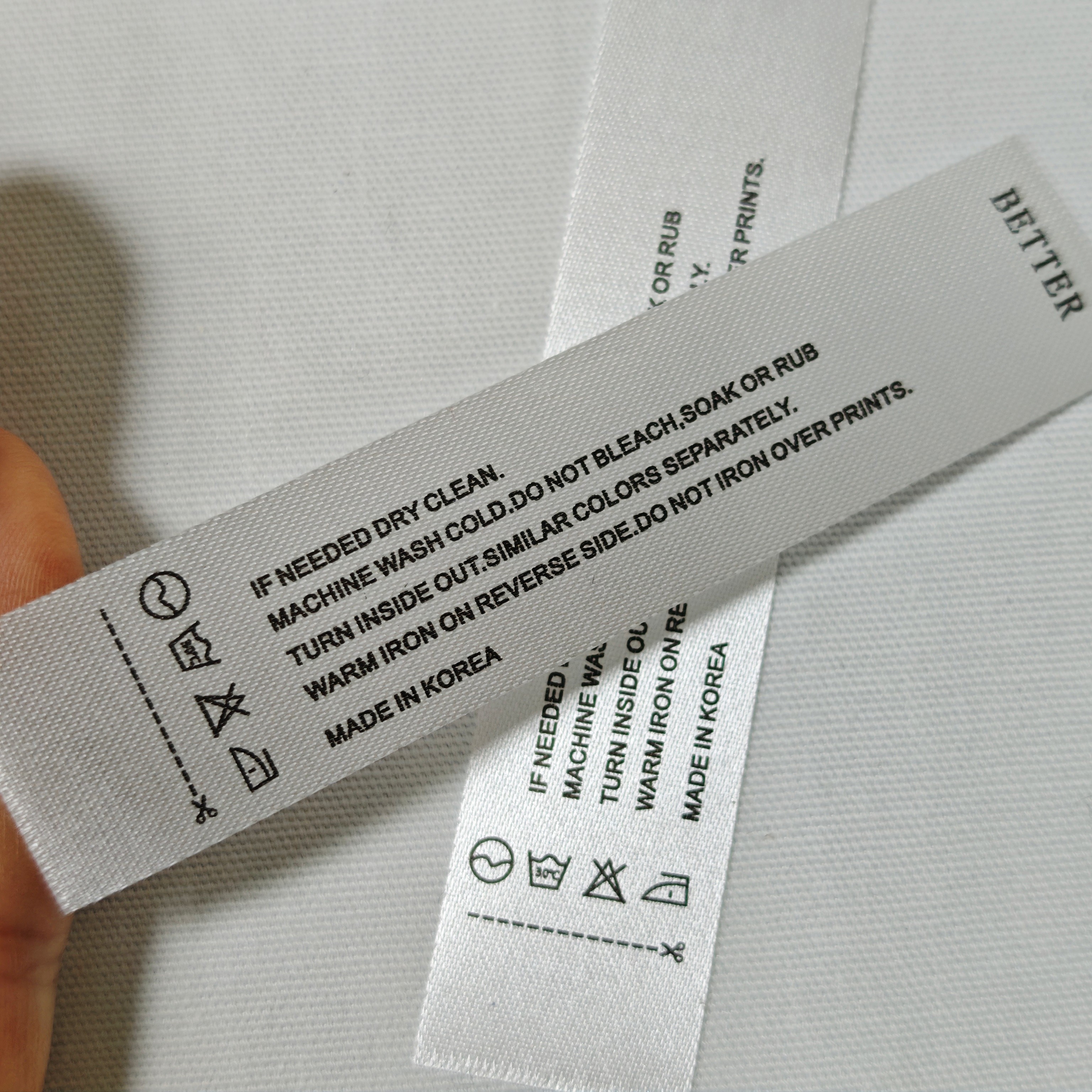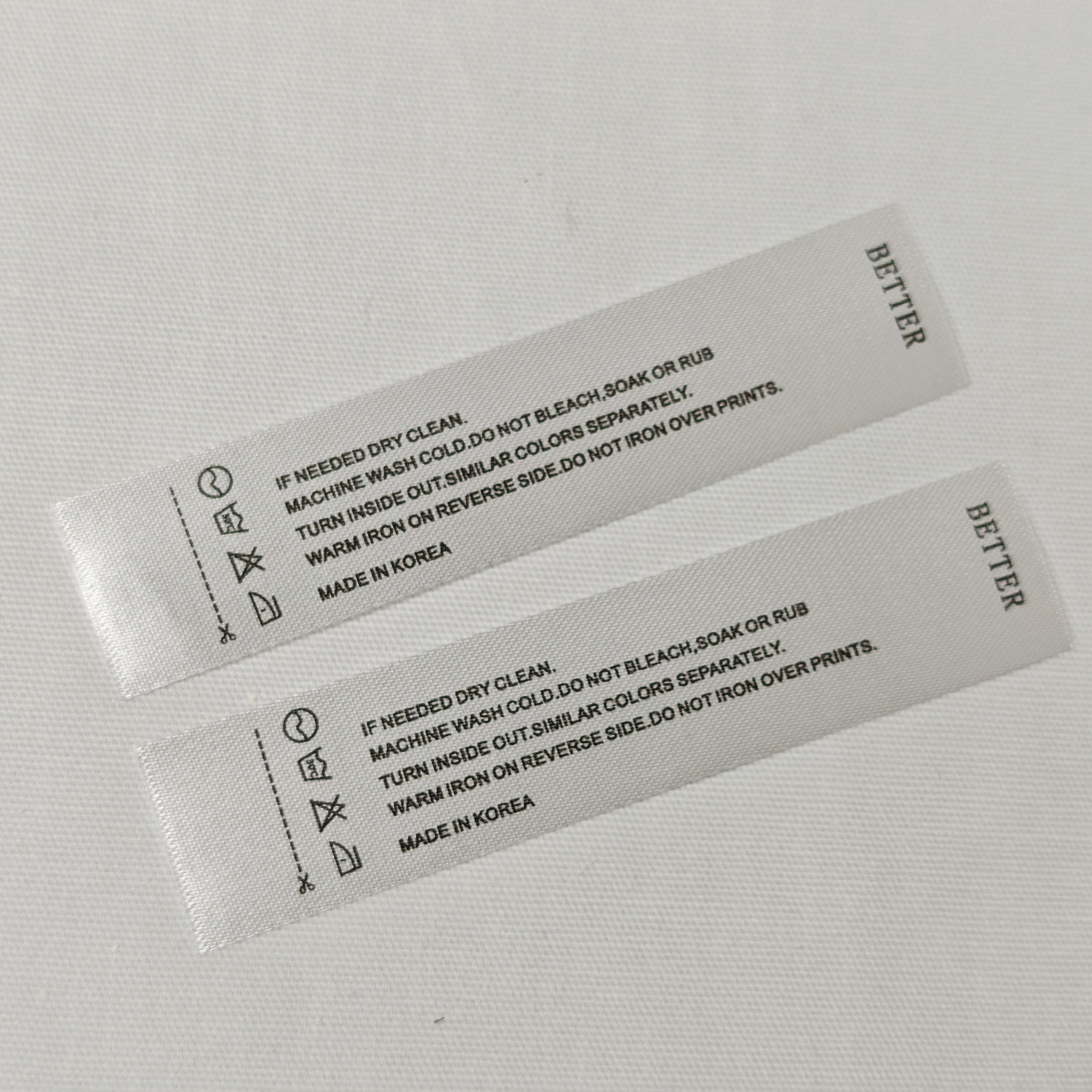 BETTER韩国领标洗水标现货 平面机缎面织唛 丝带洗水标定制侧标签