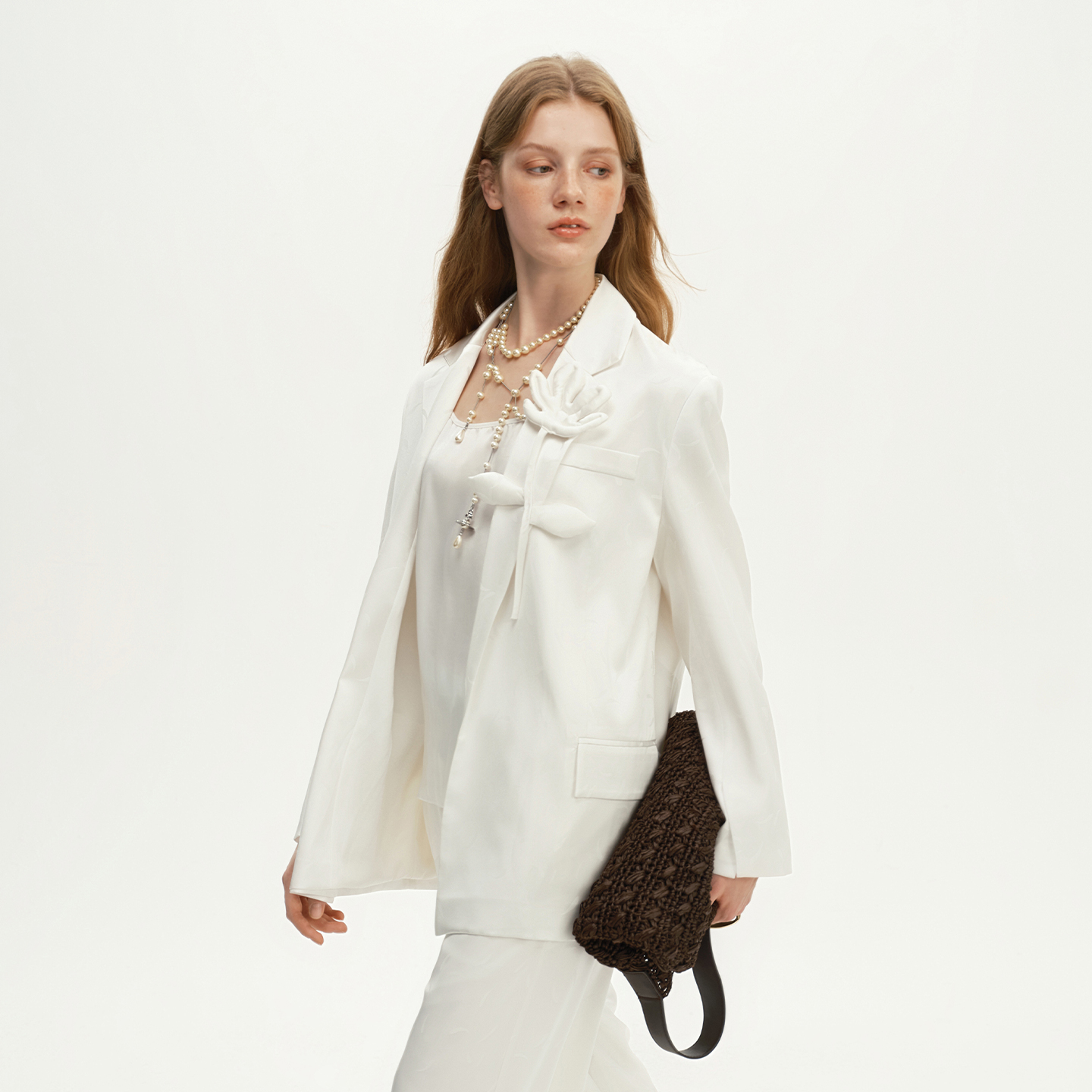 艺之卉新中式老钱风优雅白西装外套重工醋酸提花2025秋新款