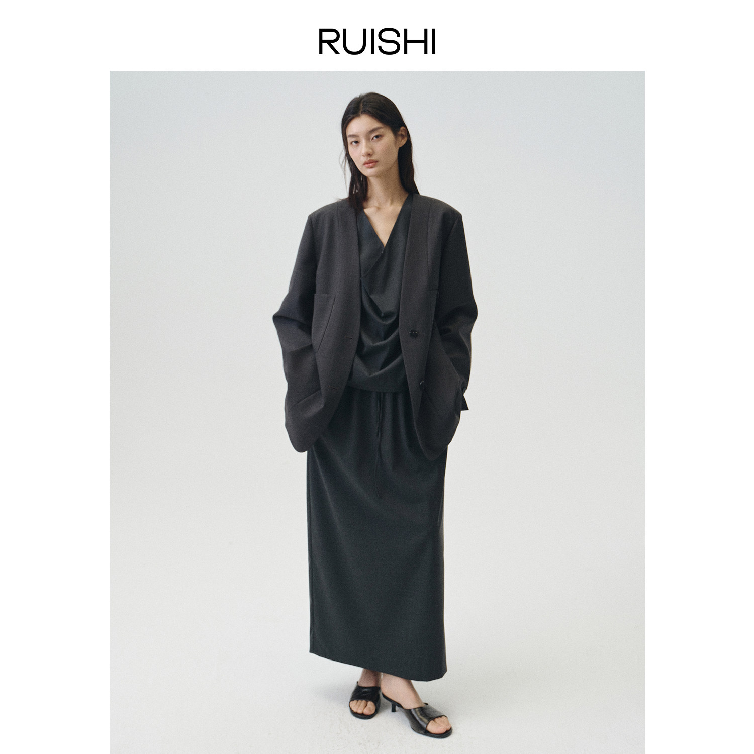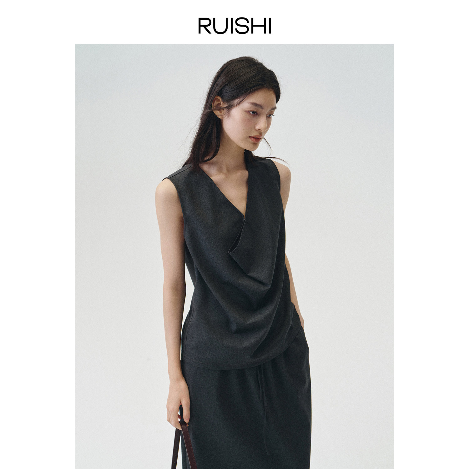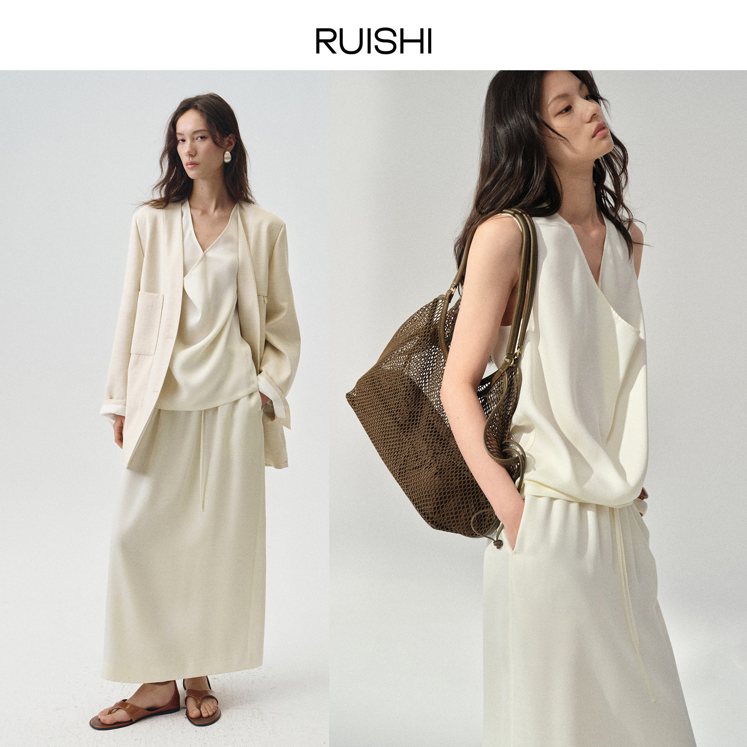 RUISHI芮时“恰好时光” 气质松弛荡领无袖背心半身裙套装女春