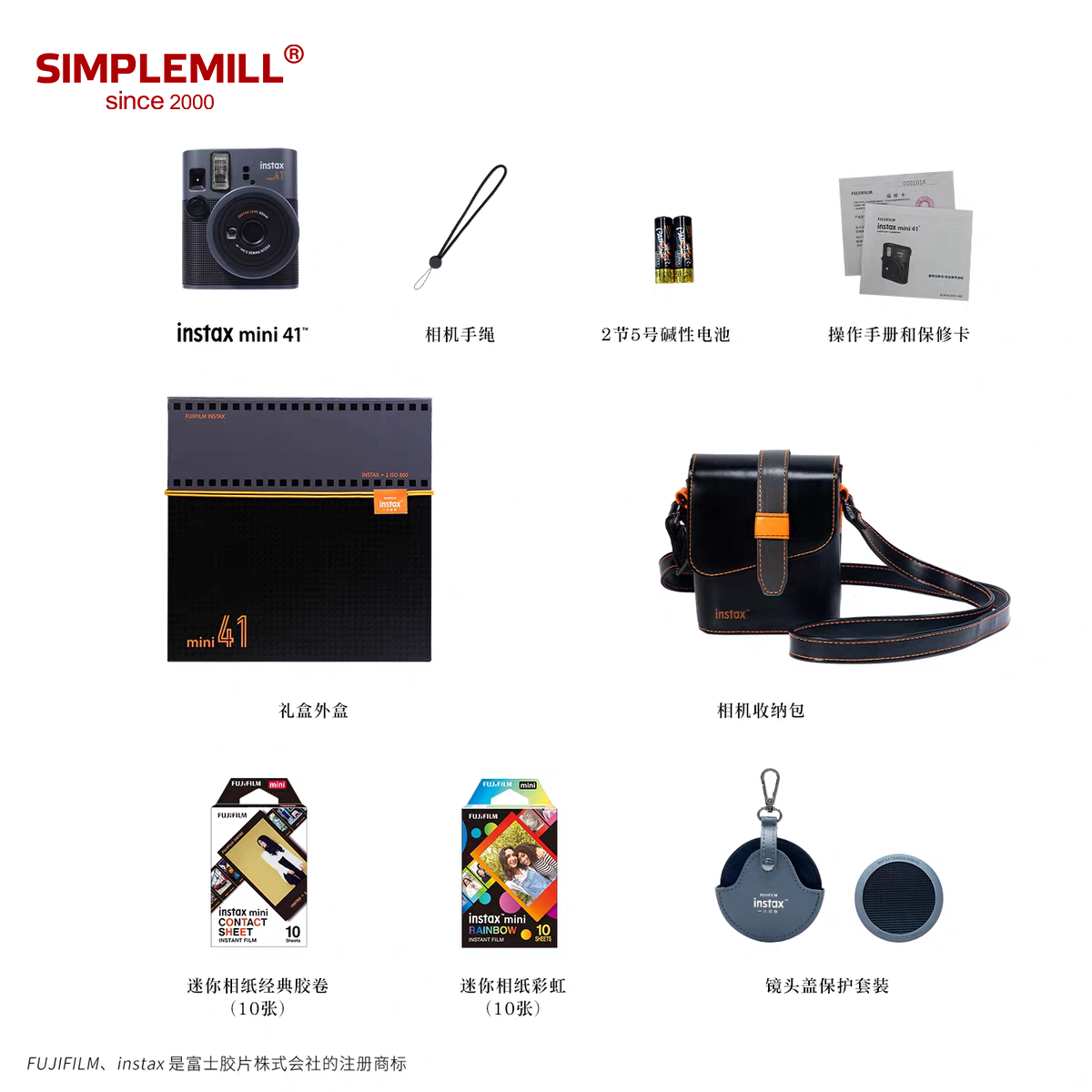 朴坊富士instax mini41一次成像相机拍立得新经典礼盒套装礼物