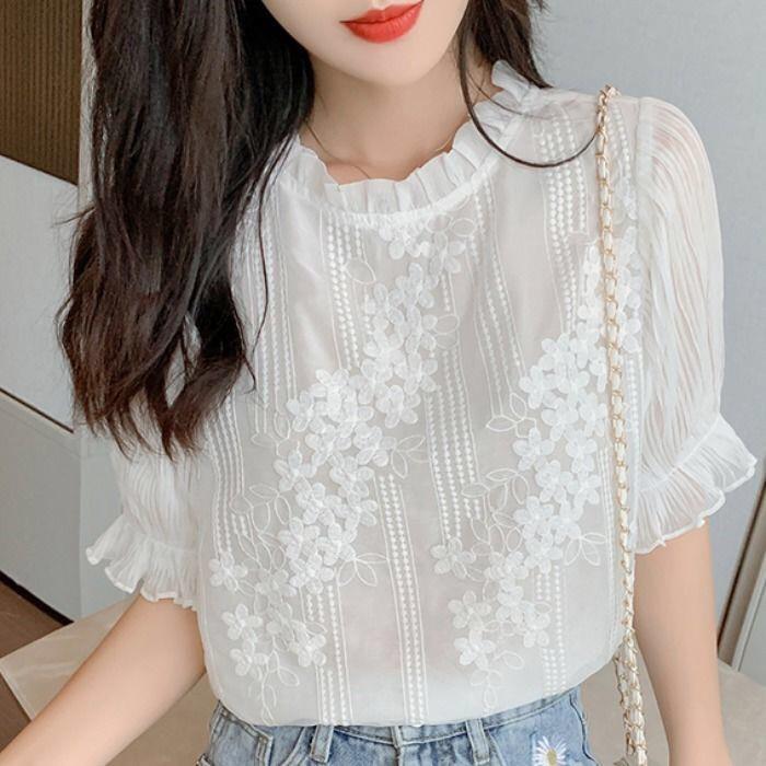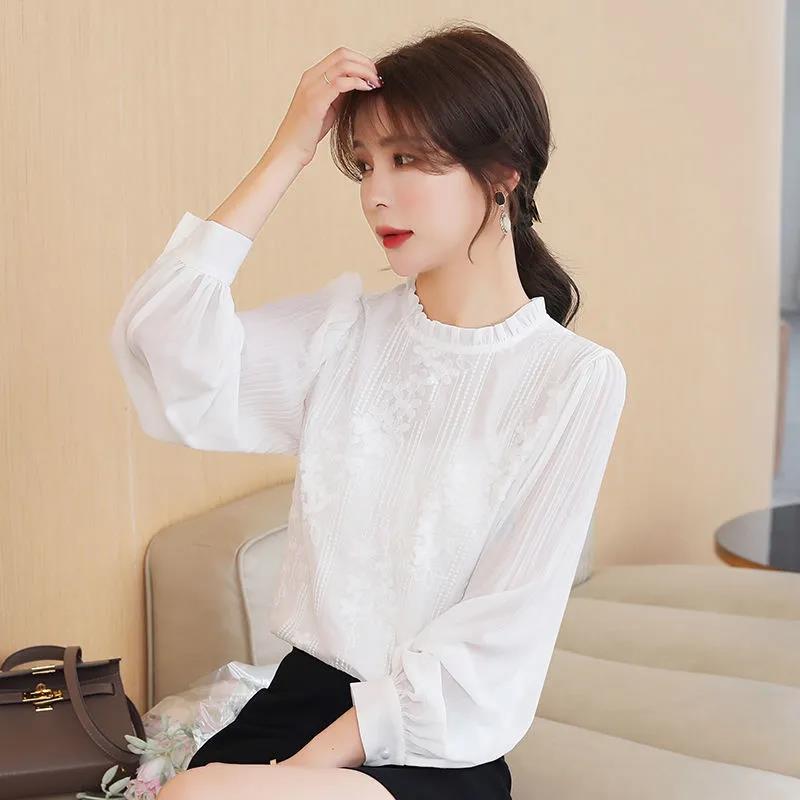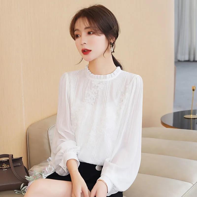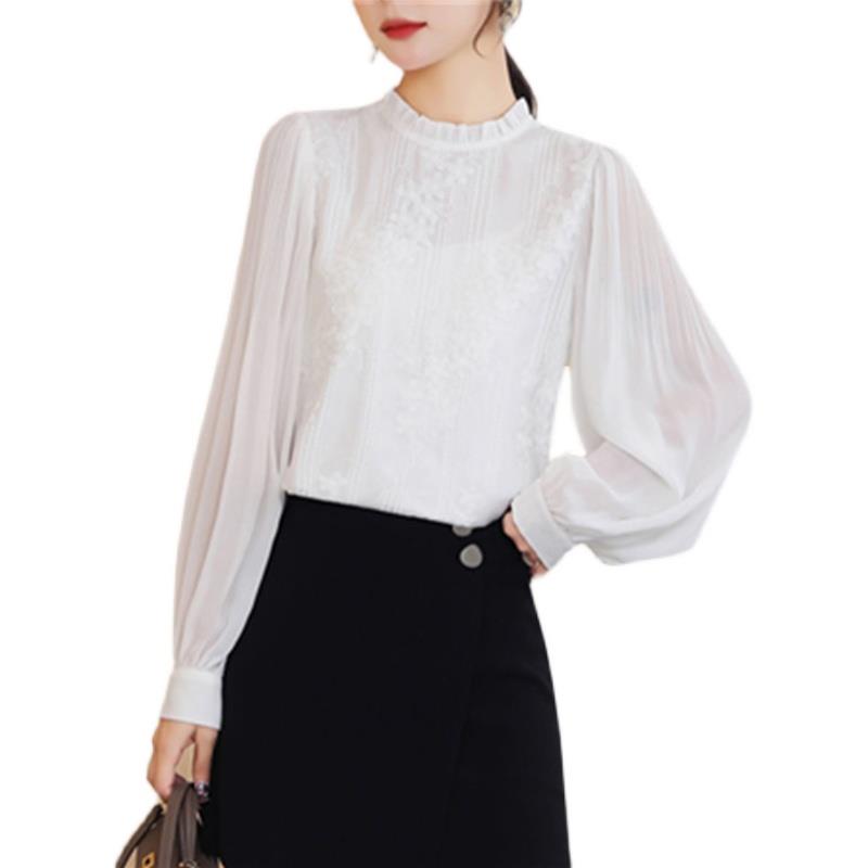 秋冬打底内搭白色衬衫女长袖衫上衣立领衬衣木耳边蕾丝0929kz