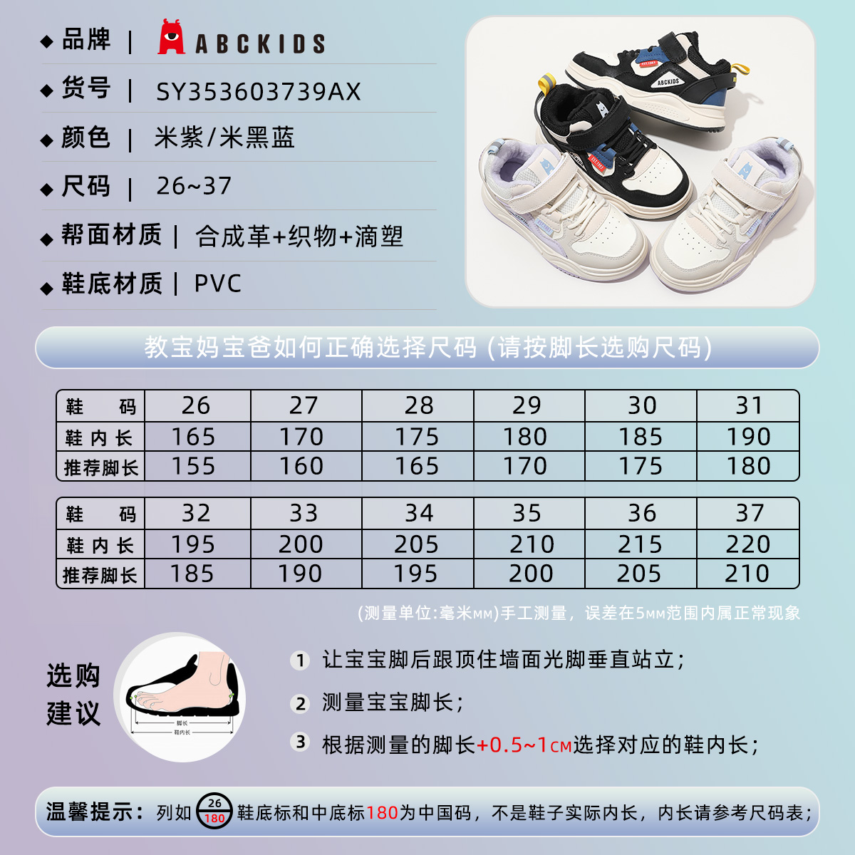 ABCkids儿童棉鞋2025冬季新款男童加绒保暖运动鞋女童加厚二棉鞋