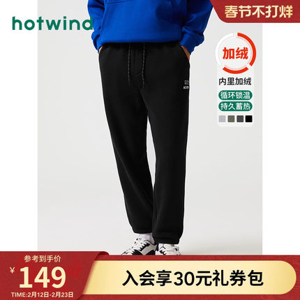 热风冬季新款男士舒适卫裤加绒运动裤长裤潮流休闲束脚裤男