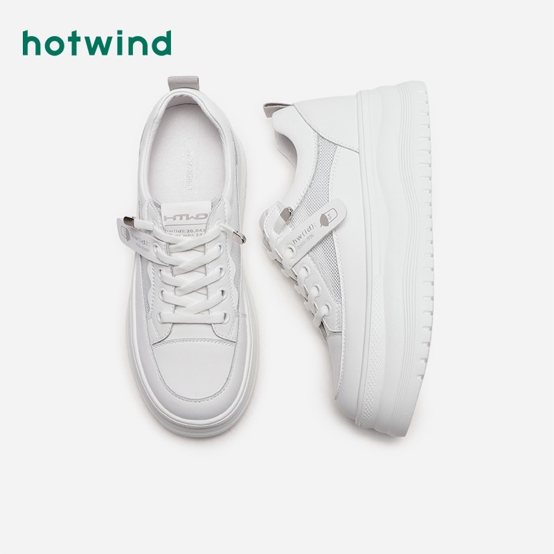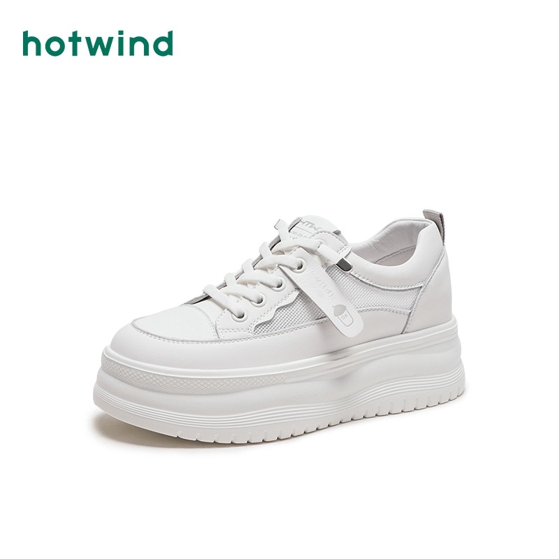 热风2024年秋季新款女士时尚厚底学院风休闲鞋圆头系带小白鞋板鞋