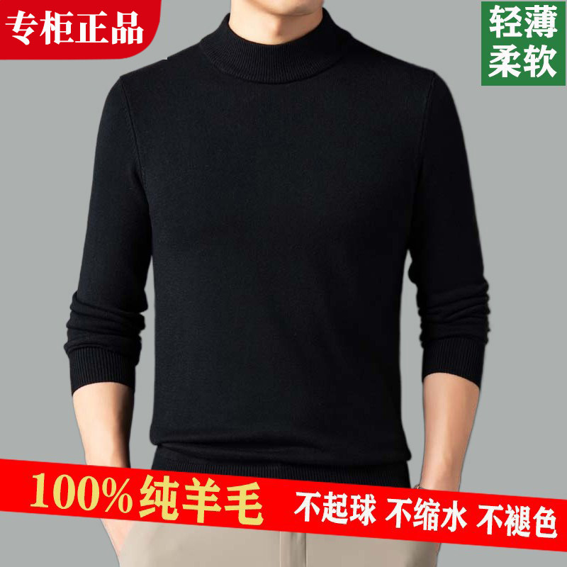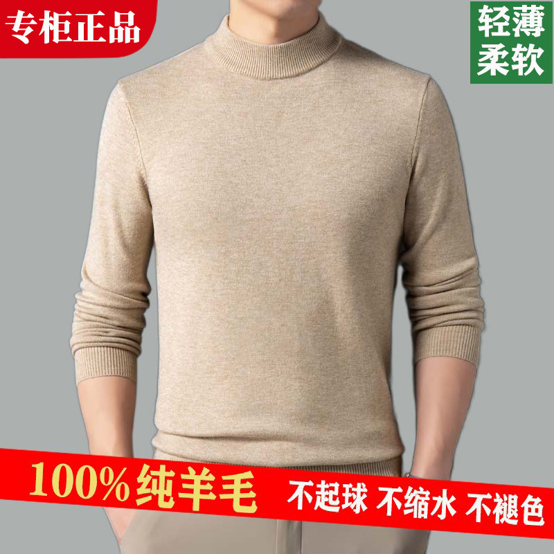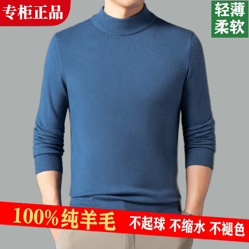 鄂尔多斯市纯羊毛衫男半高领春秋冬季羊绒衫打底针织中厚纯色毛衣