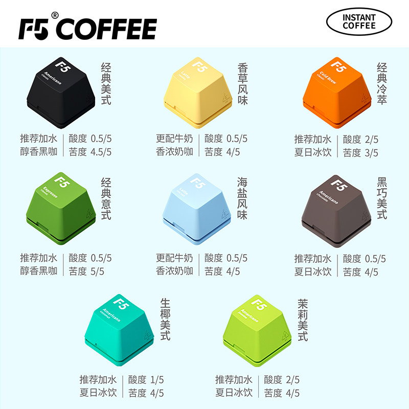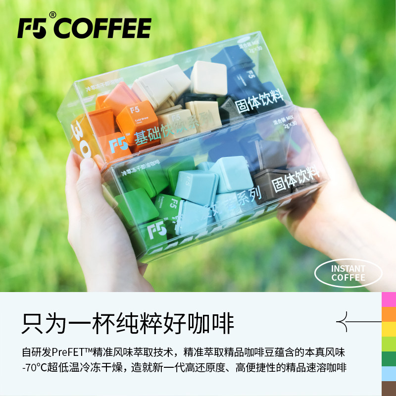 F5超即溶冷萃冻干黑咖啡粉美式香草拿铁速溶0脂无蔗糖正品30颗*2g