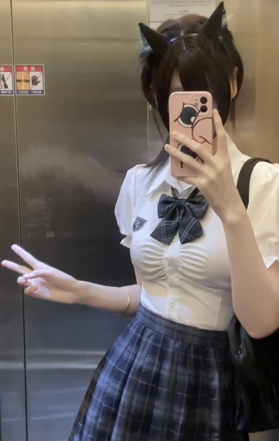JK制服夏学院风原创辣妹白色收腰衬衫女泡泡袖衬衣设计感小众短袖