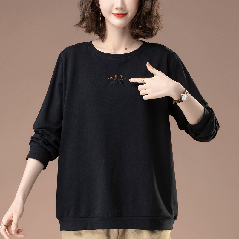 宽松卫衣女秋冬加绒加厚中老年妈妈装加大码绣花纯棉圆领显瘦上衣
