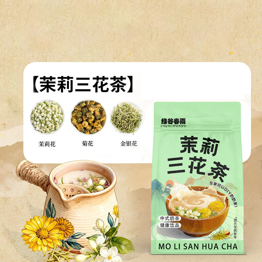 绿谷春雨罐罐烤奶茶玫瑰茉莉桑葚材料包三角包自制烤奶网红饮品