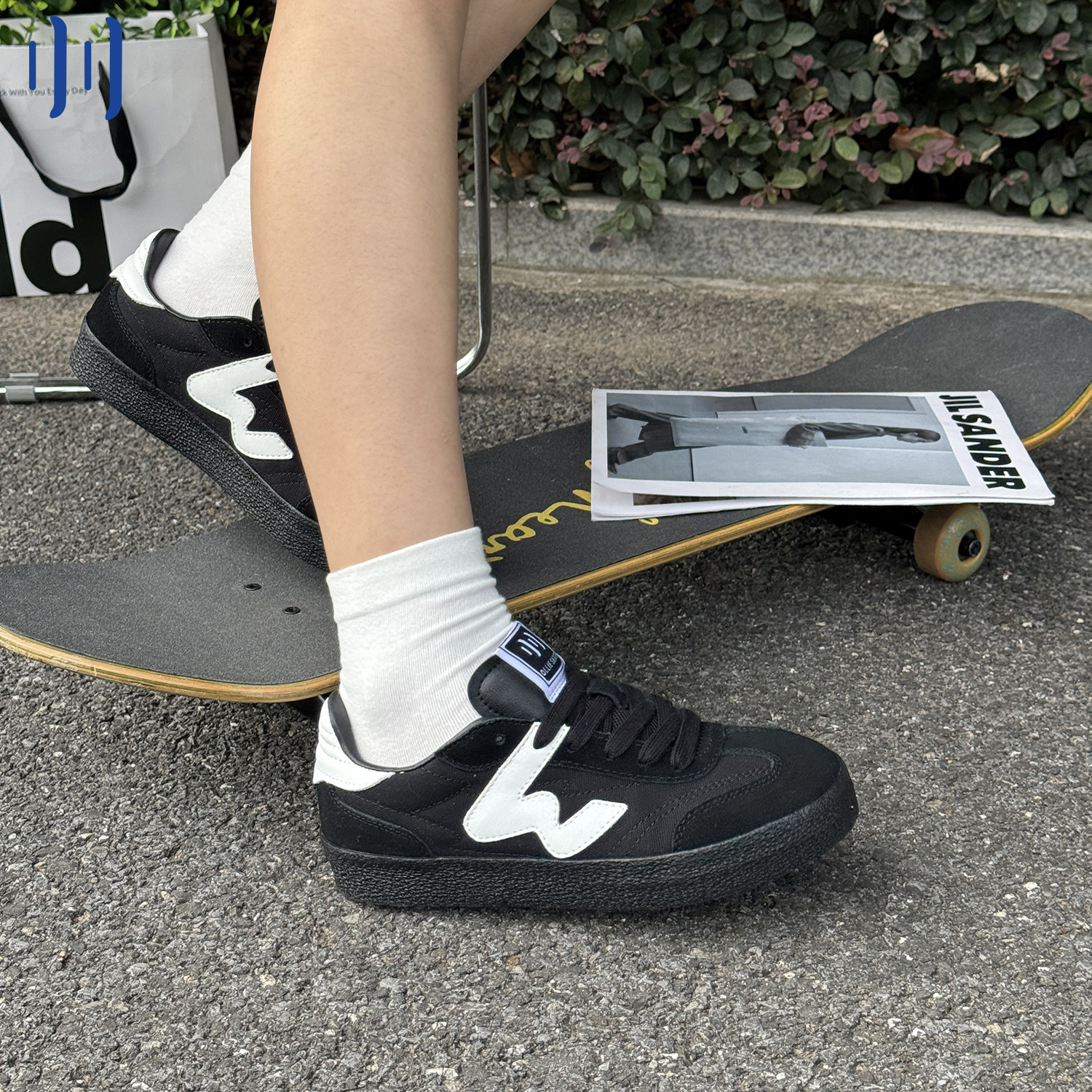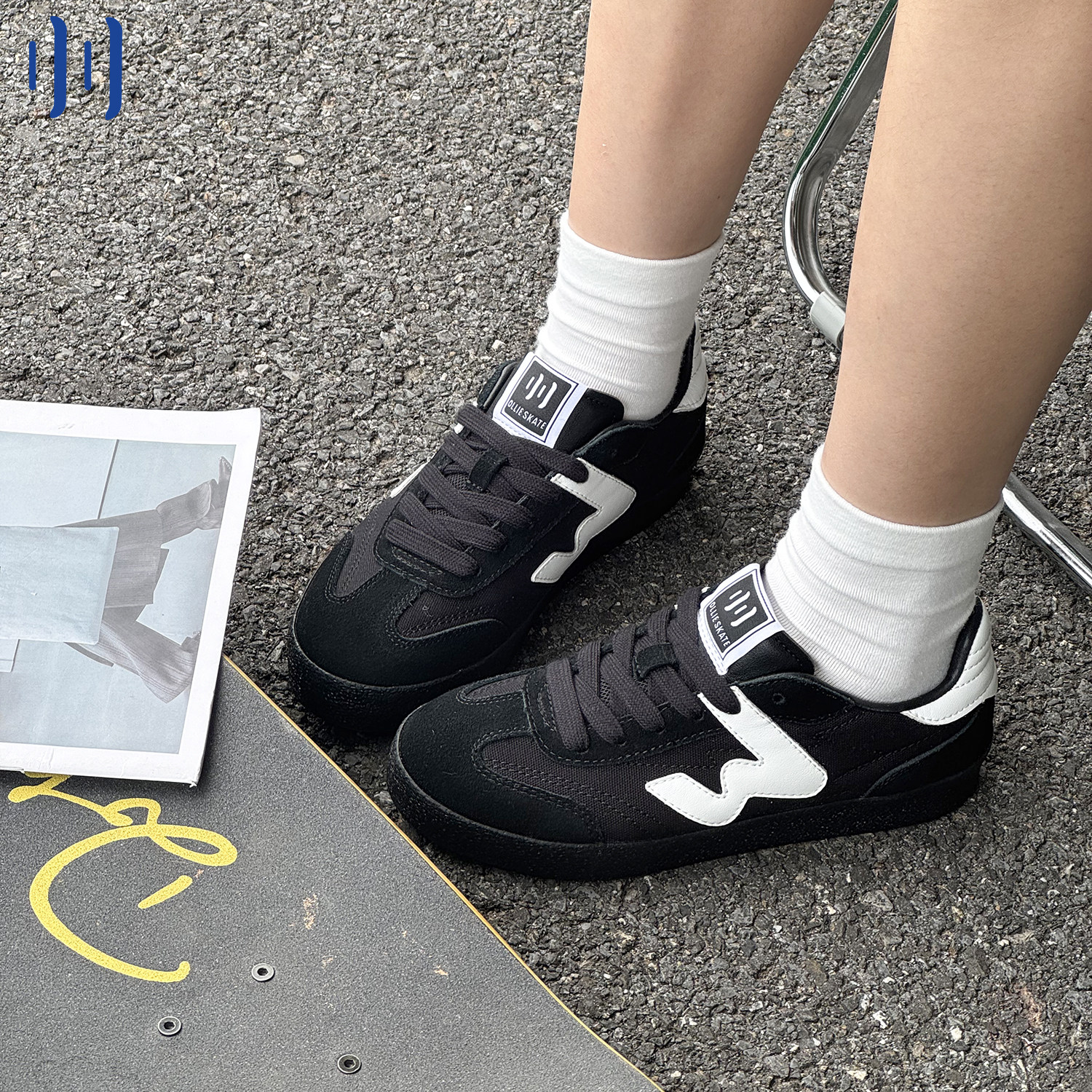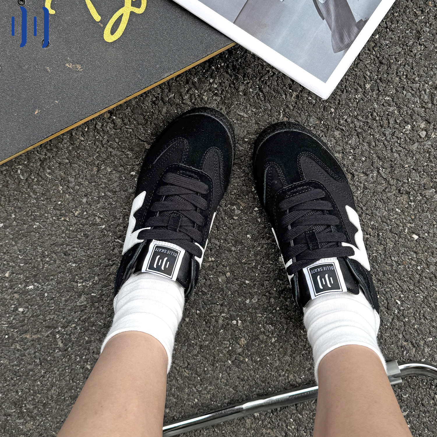 顽刻ollieskate黑武士配色翻毛皮生胶底W系列男女国潮德训滑板鞋