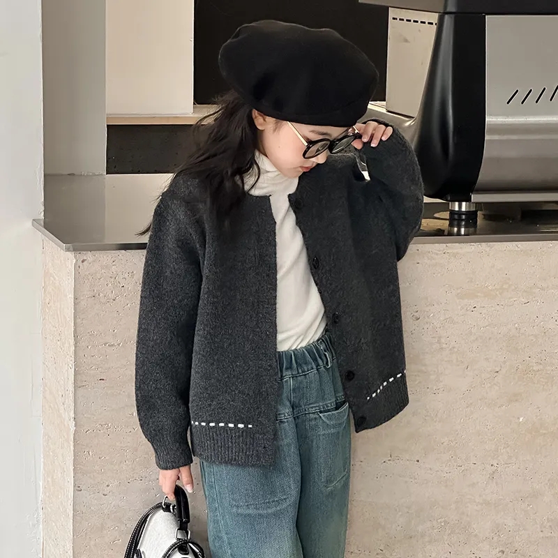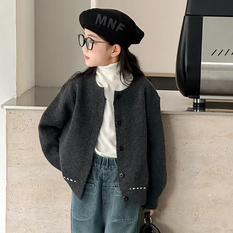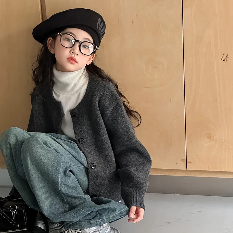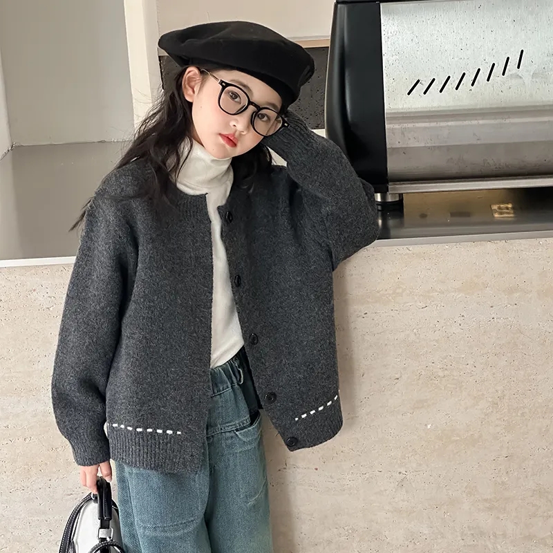 女童针织衫外套秋冬新款洋气中大童女孩韩版秋装开衫毛衣外穿上衣