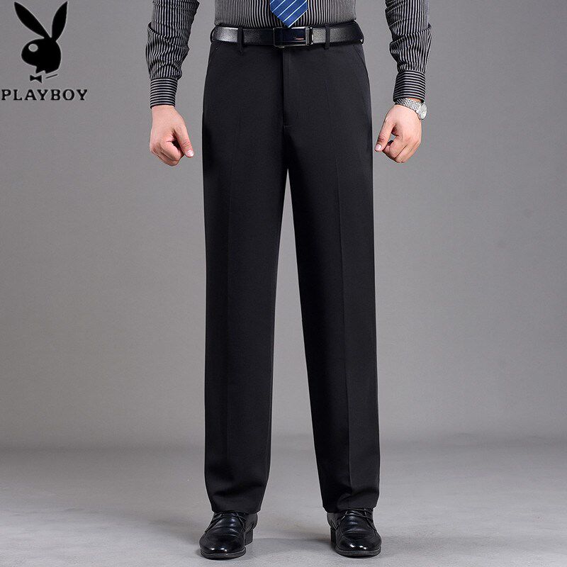 花花公子秋季厚款西裤男新款高腰长裤宽松直筒免烫商务正装西装裤