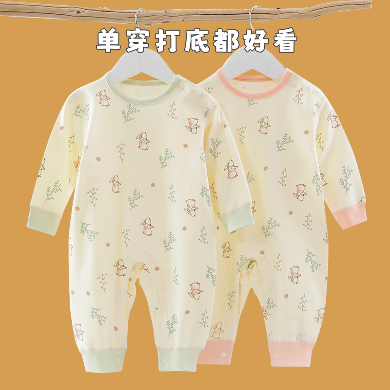 婴幼儿秋季长袖纯棉打底四季款爬服连体衣新生儿家居保暖无骨睡衣