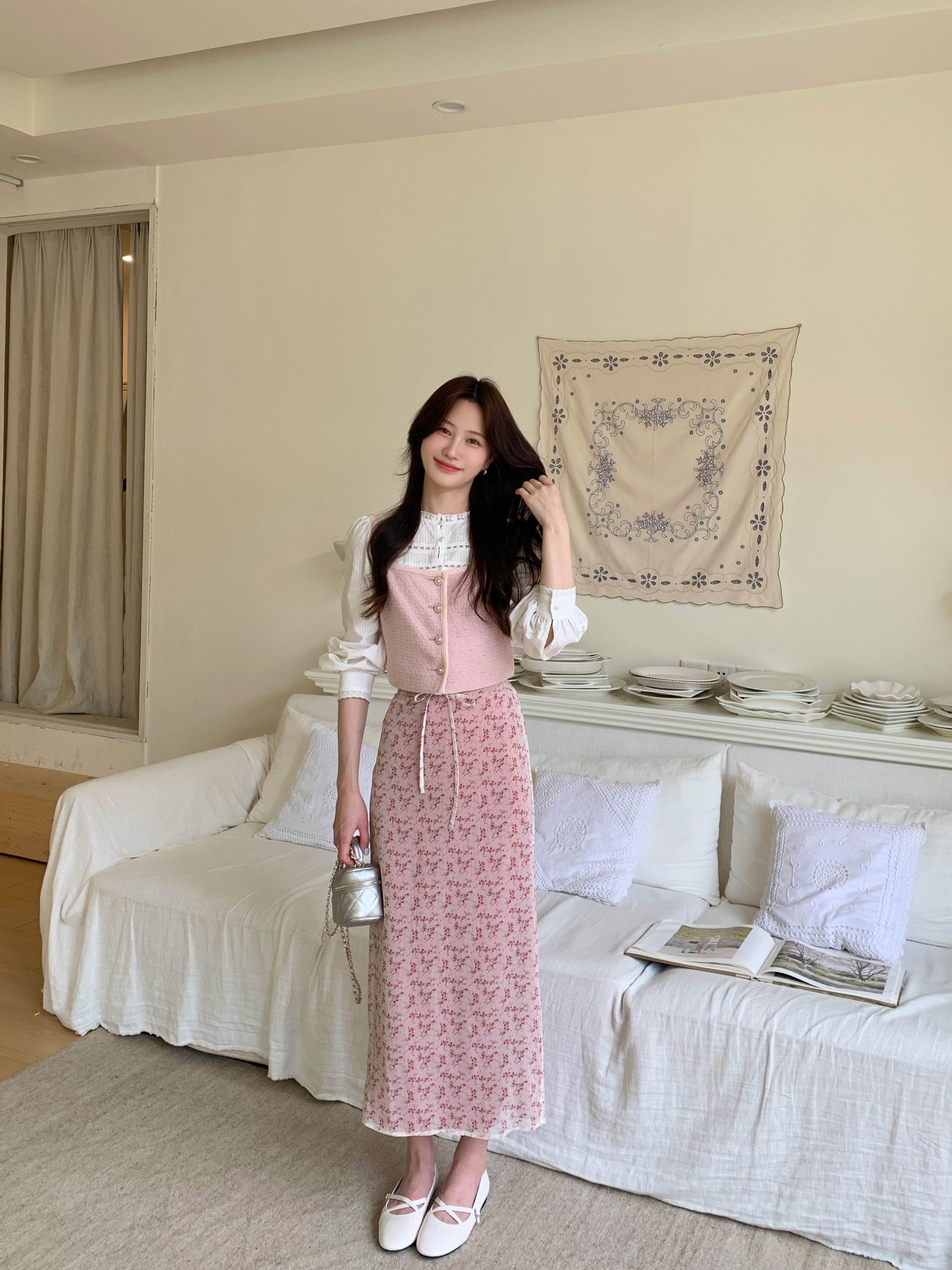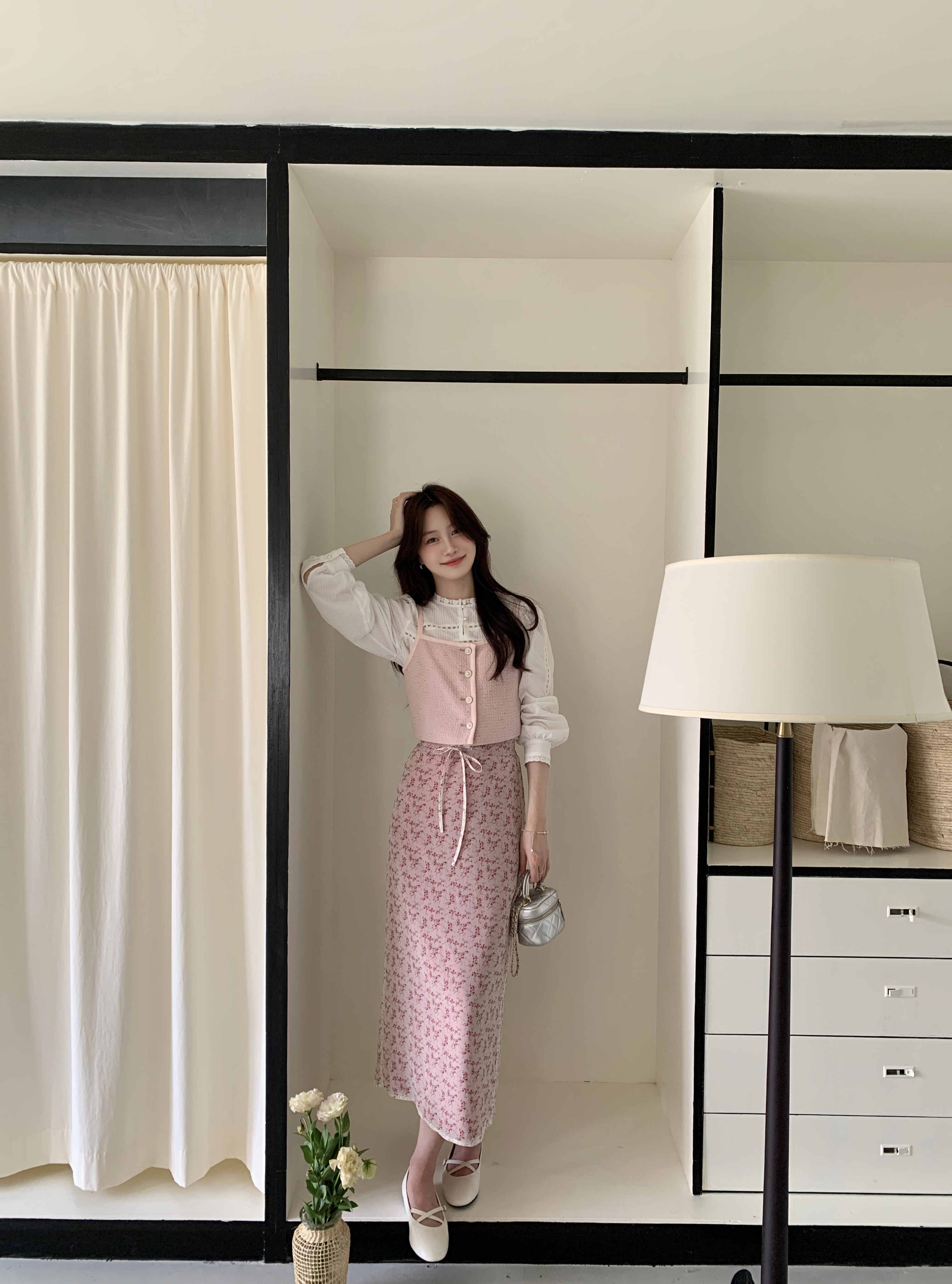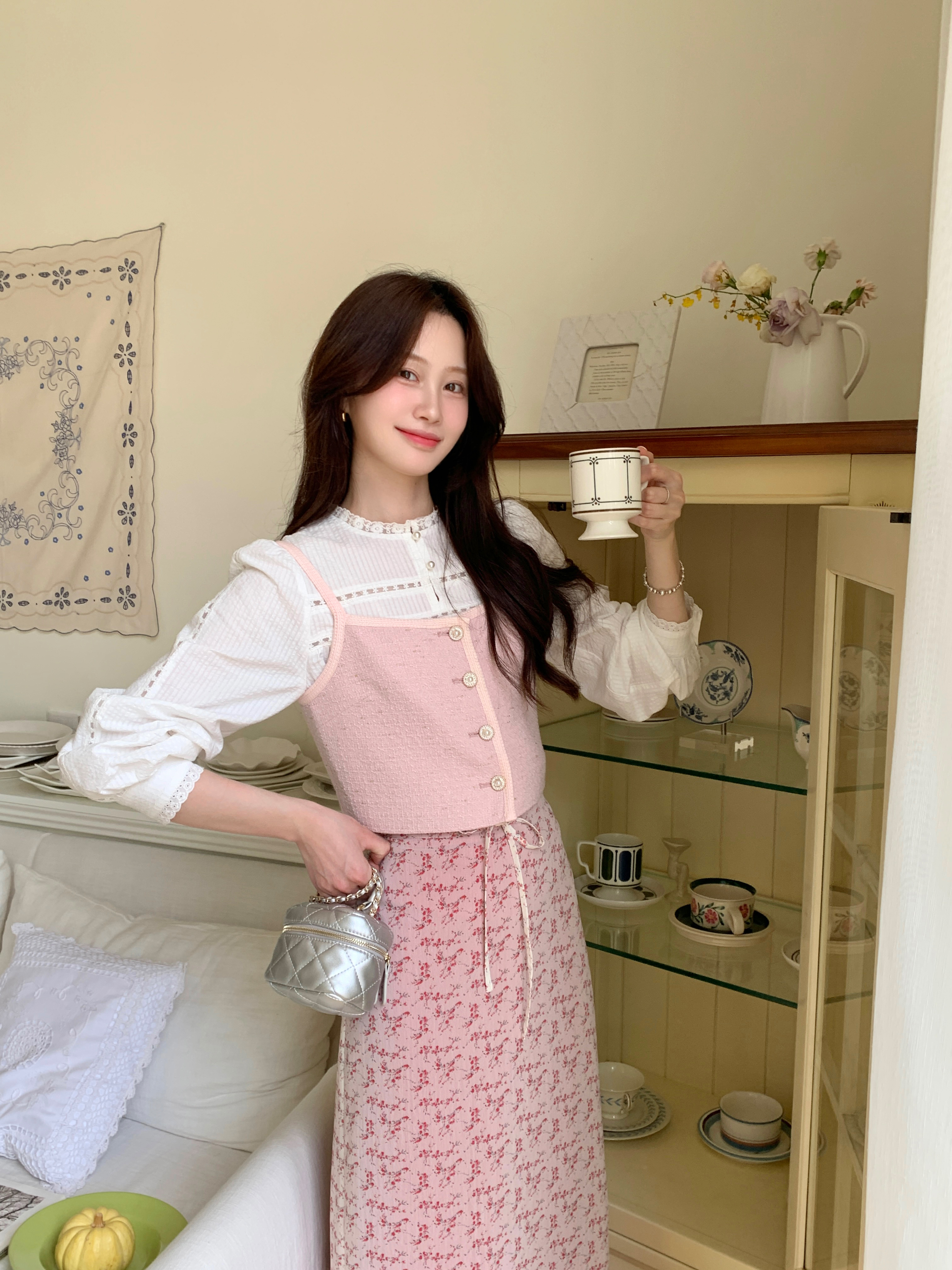 JeJuna炸鸡欧尼 奥斯汀玫瑰 碎花双层粉色吊带背心双层碎花半身裙