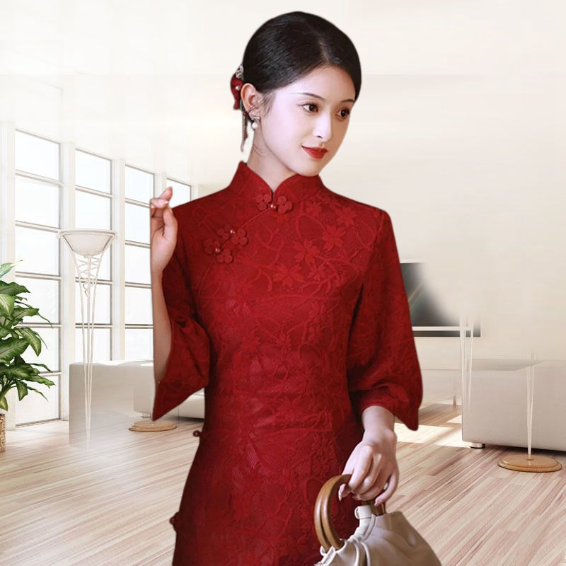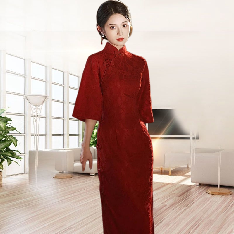 苏州高端气质红色倒大袖高考必胜新款2025新款中国风改良妈妈旗袍