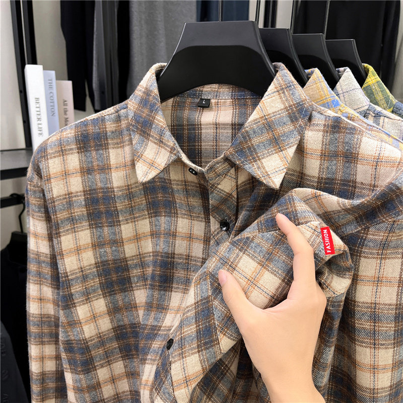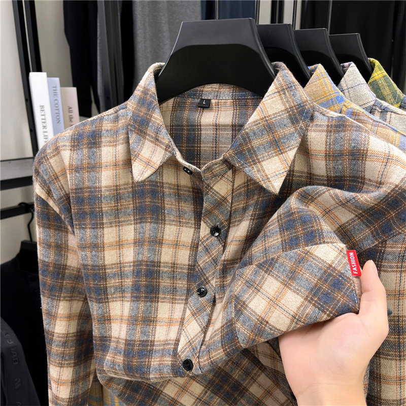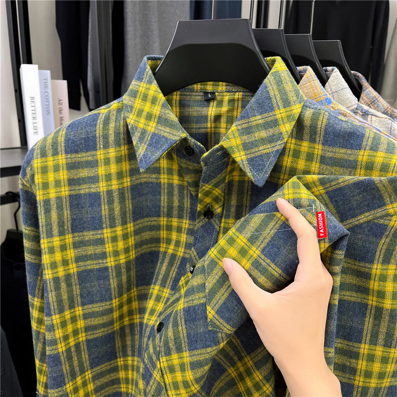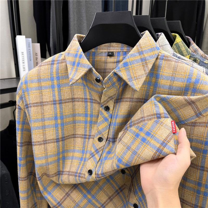 2025新款男士衬衫长袖英伦雅痞男装秋季新款格子衬衣服男潮流外套