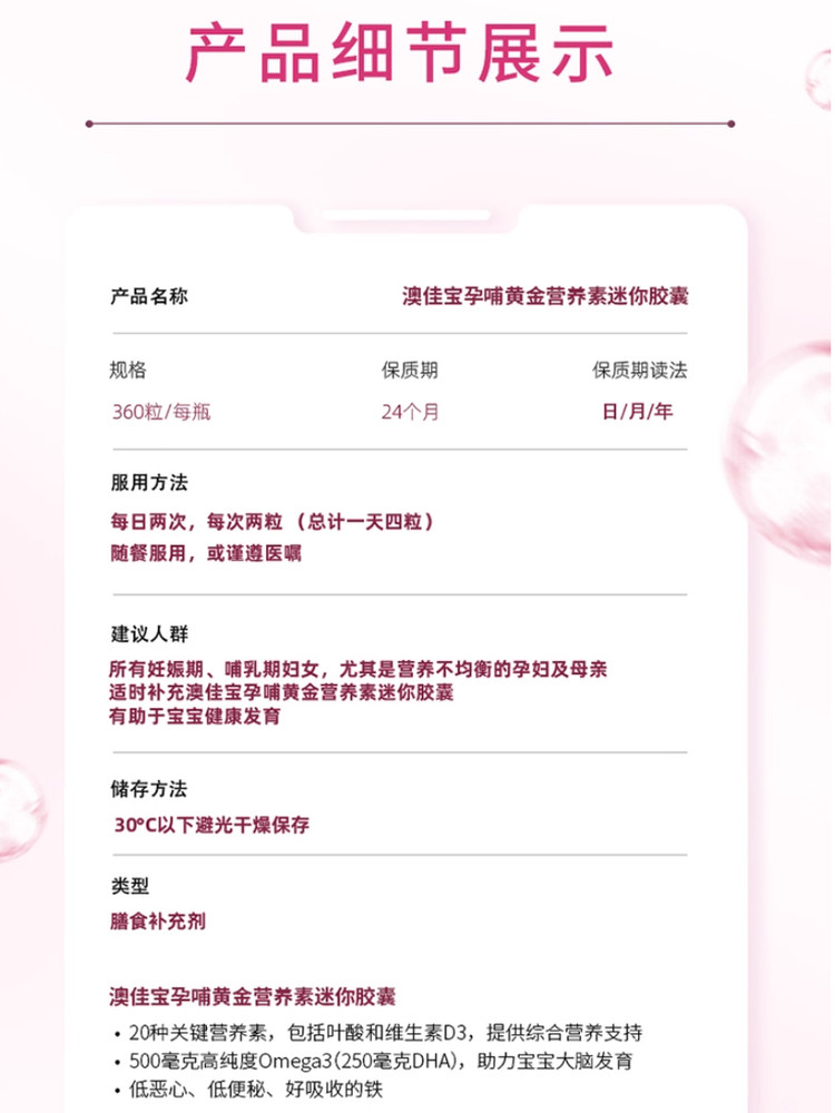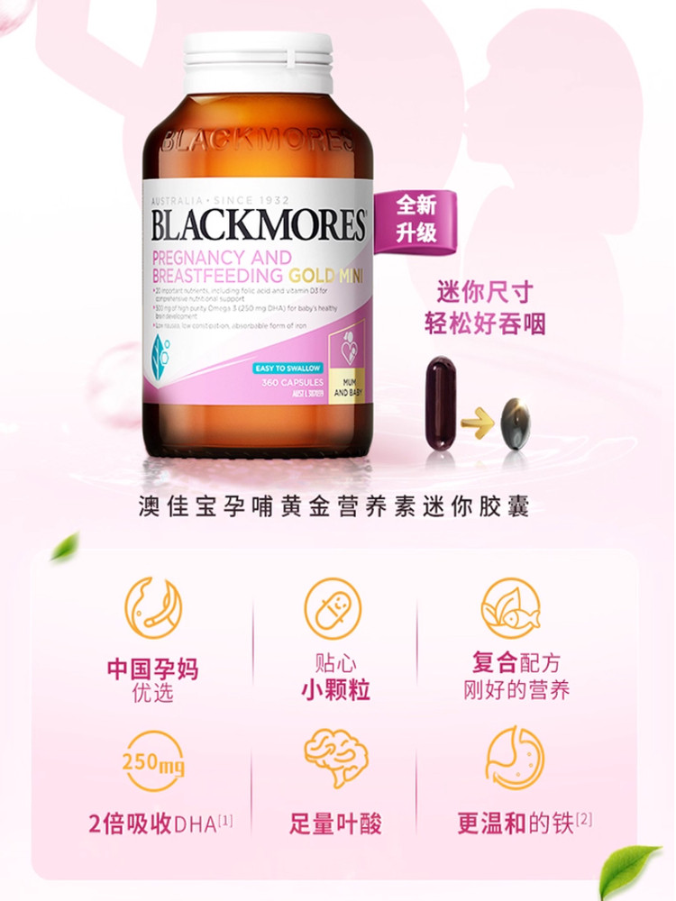 澳佳宝BLACKMORESmini孕黄金素叶酸dha备孕复合维生素360粒