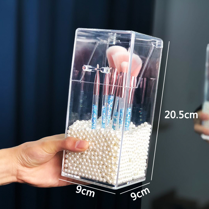 化妆刷收纳桶防尘带盖眼线笔轻奢桌面亚克力透明便携化妆品收纳盒