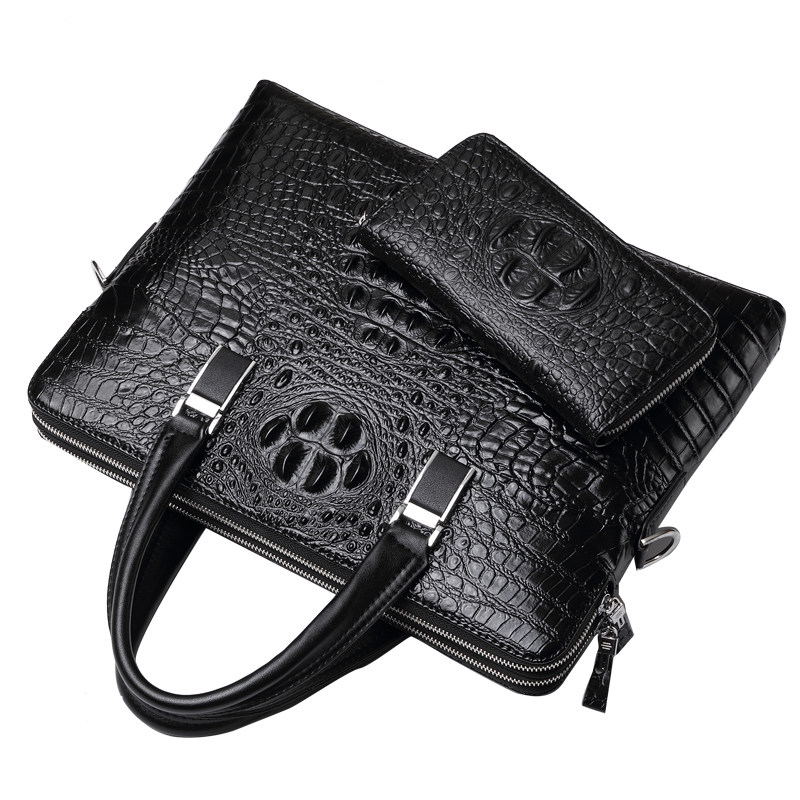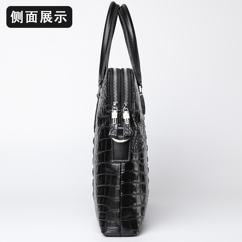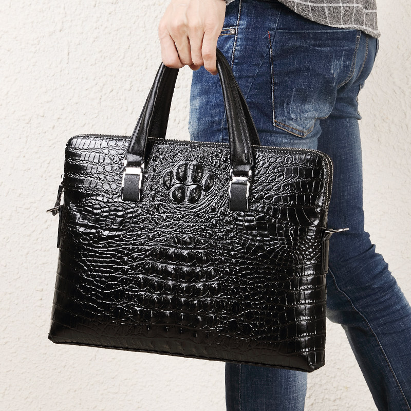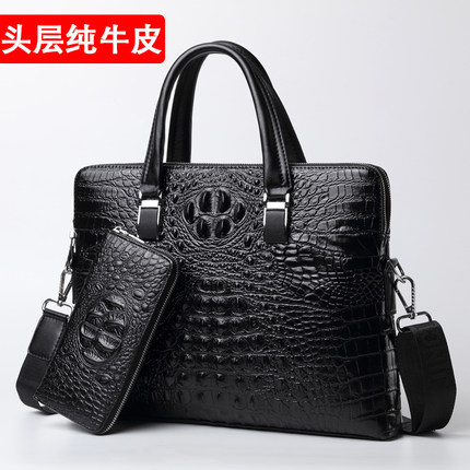 男士手提包真皮公文包横款鳄鱼纹皮包时尚潮流单肩男包牛皮商务包