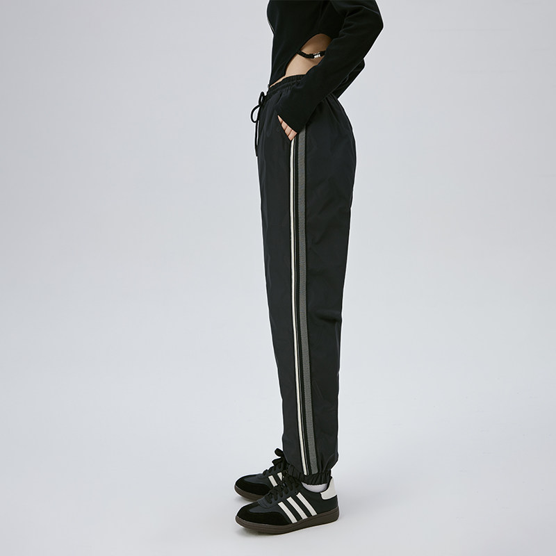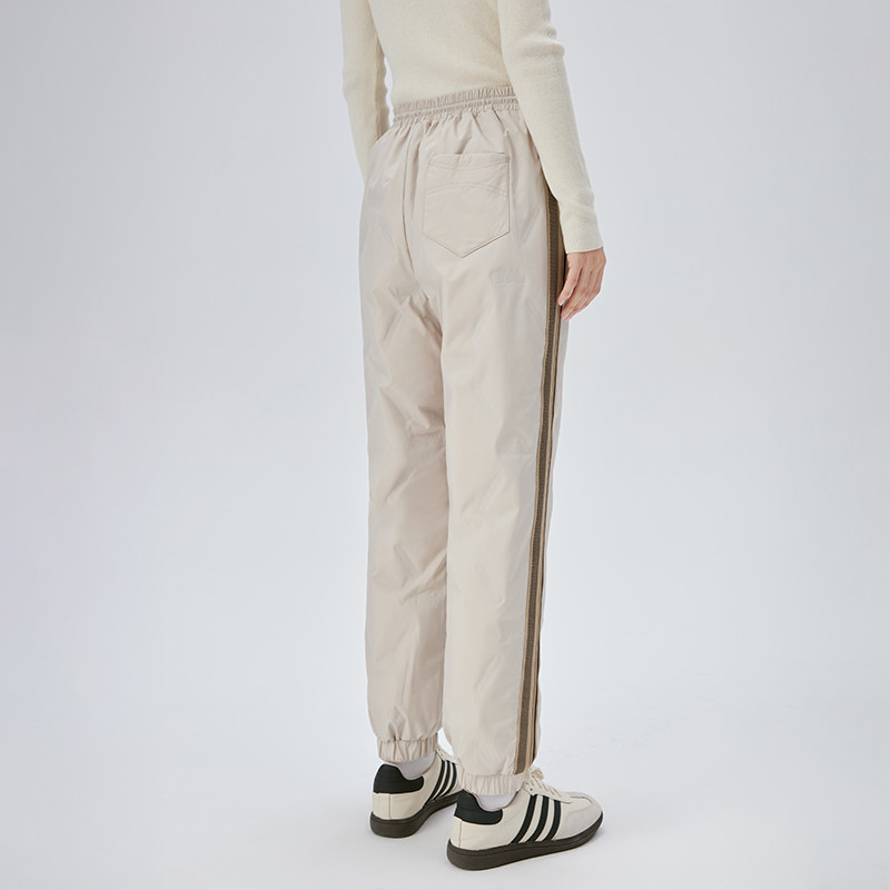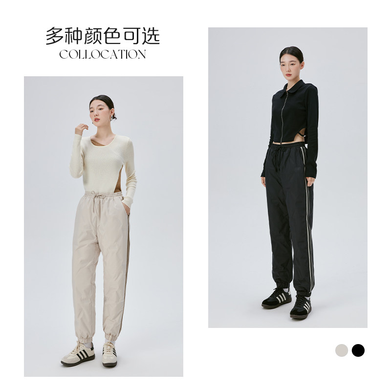 艾莱依收脚羽绒裤女士爆款拼接收腰显瘦长款时尚通勤鸭绒秋冬长裤