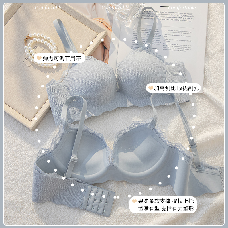 内衣女小胸聚拢收副乳防下垂女士蕾丝白色性感无钢圈文胸奶罩无痕