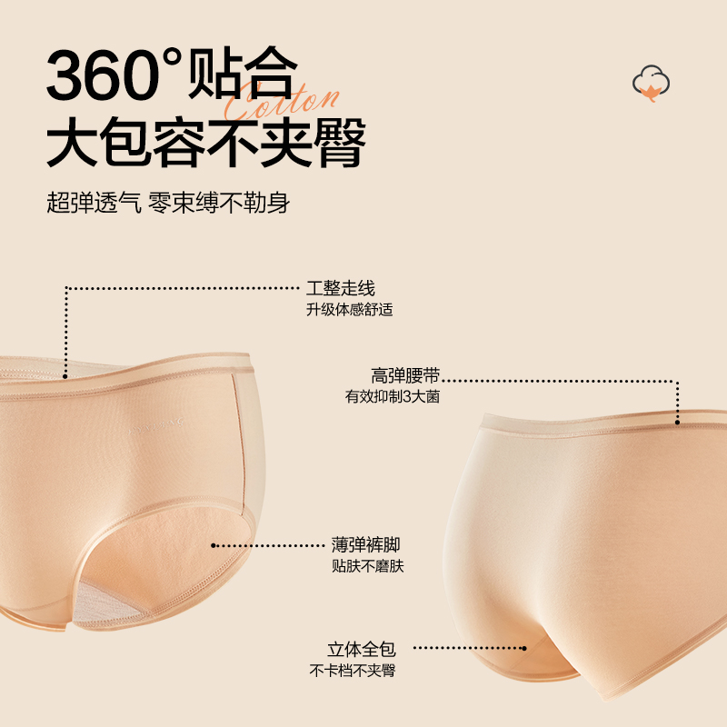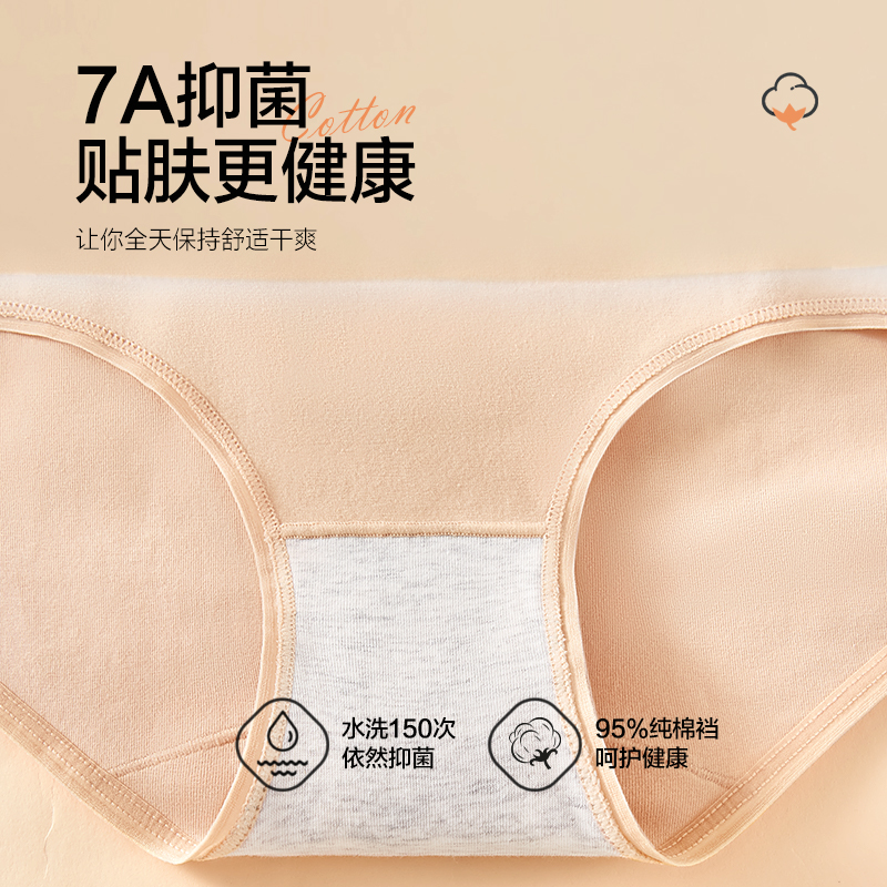 恒源祥a类纯棉女士内裤7a级抗菌透气无痕新款中腰女生三角短裤头