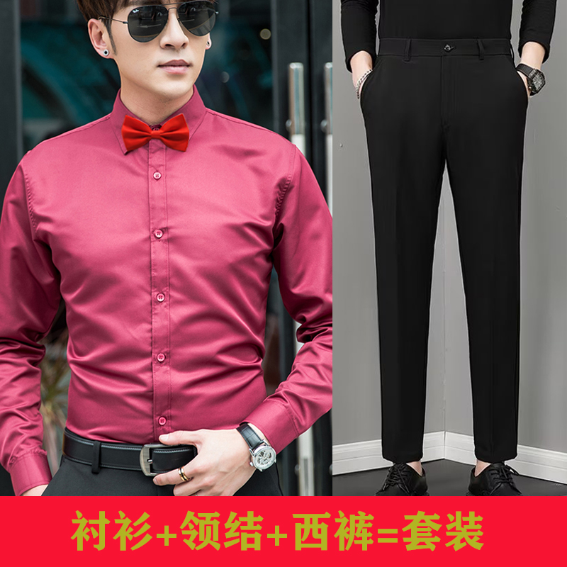 伴郎服兄弟装衬衫西裤男士套装结婚礼服大合唱演出团服长袖白衬衣