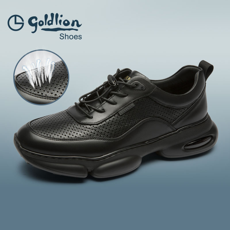金利来男鞋2025春夏新款商务休闲皮鞋冲孔透气凉鞋舒适厚底气垫