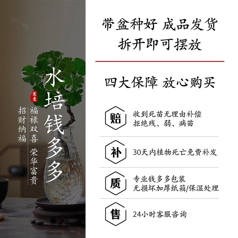 水培圆叶福禄桐钱多多盆栽花卉植物室内客厅桌面茶几懒人水养绿植