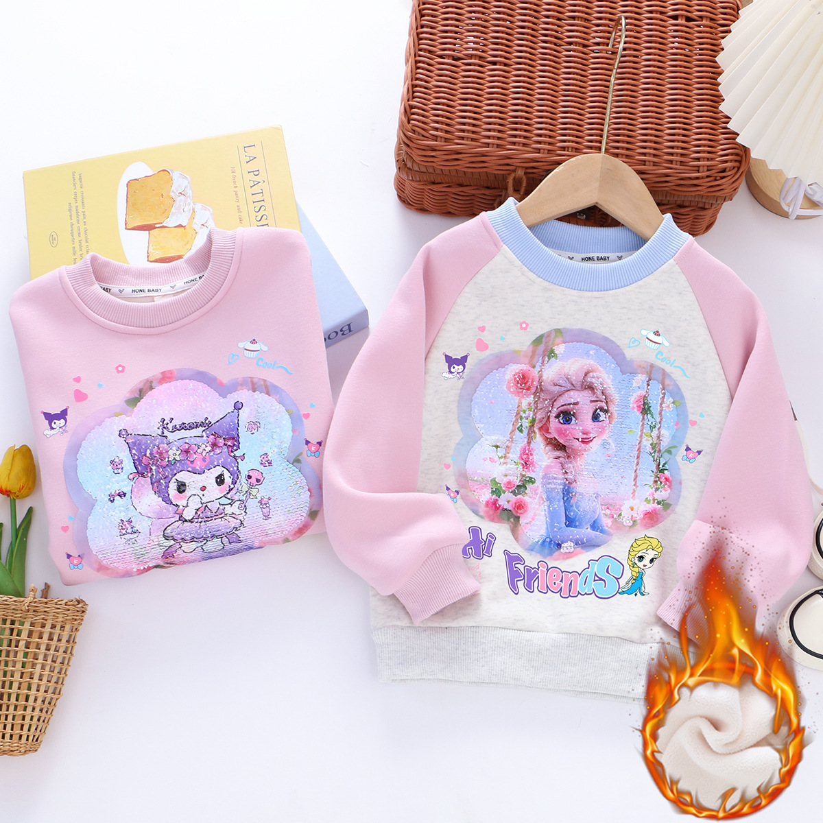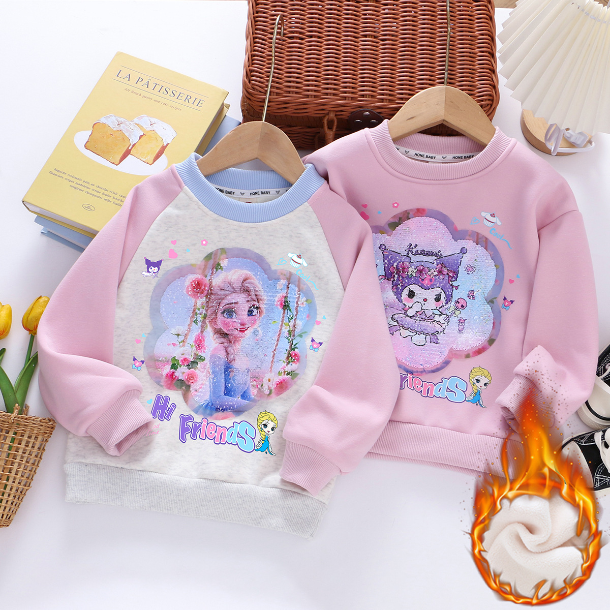 女童加绒卫衣冬季儿童学校加绒加厚衣服女孩紫一体绒圆领长袖