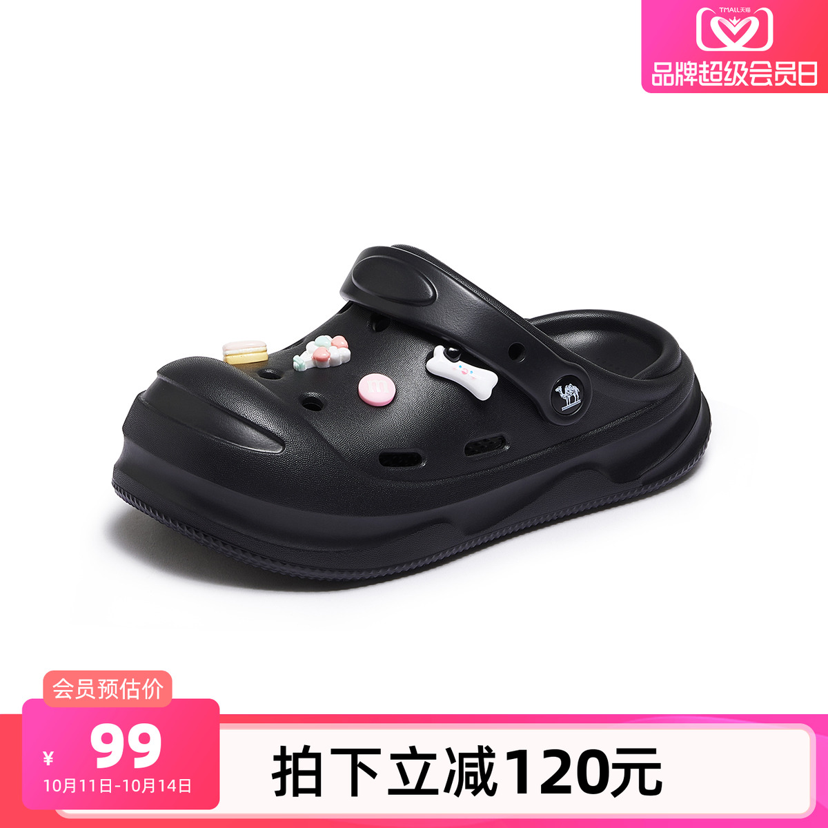 骆驼女鞋2025春夏软凉拖鞋外穿厚底增高洞洞鞋防滑包头拖沙滩鞋