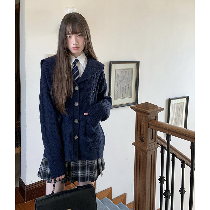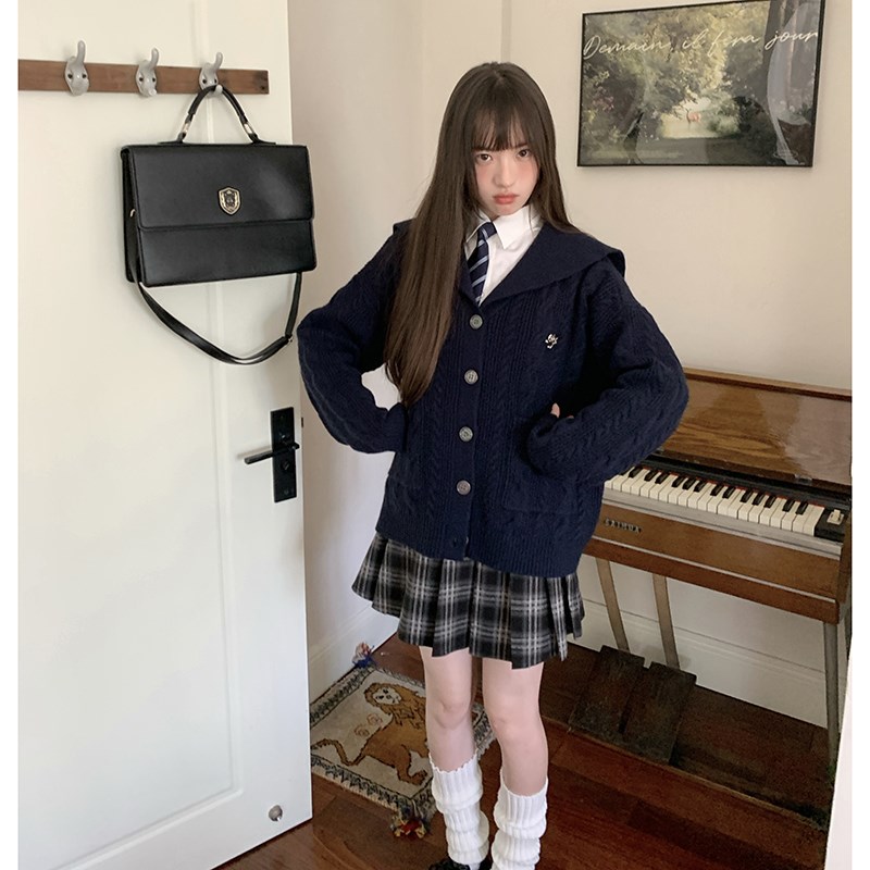 秋季日系原创JK制服毛衣学院风校供感针织开衫长袖宽松百搭外套女