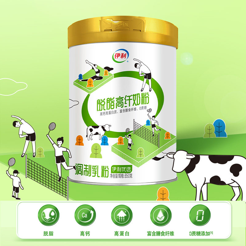 伊利脱脂高纤高钙奶粉850g×1罐
