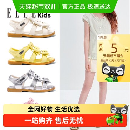 ELLE KIDS童鞋2025新款夏季多巴胺凉鞋女孩蝴蝶结沙滩鞋