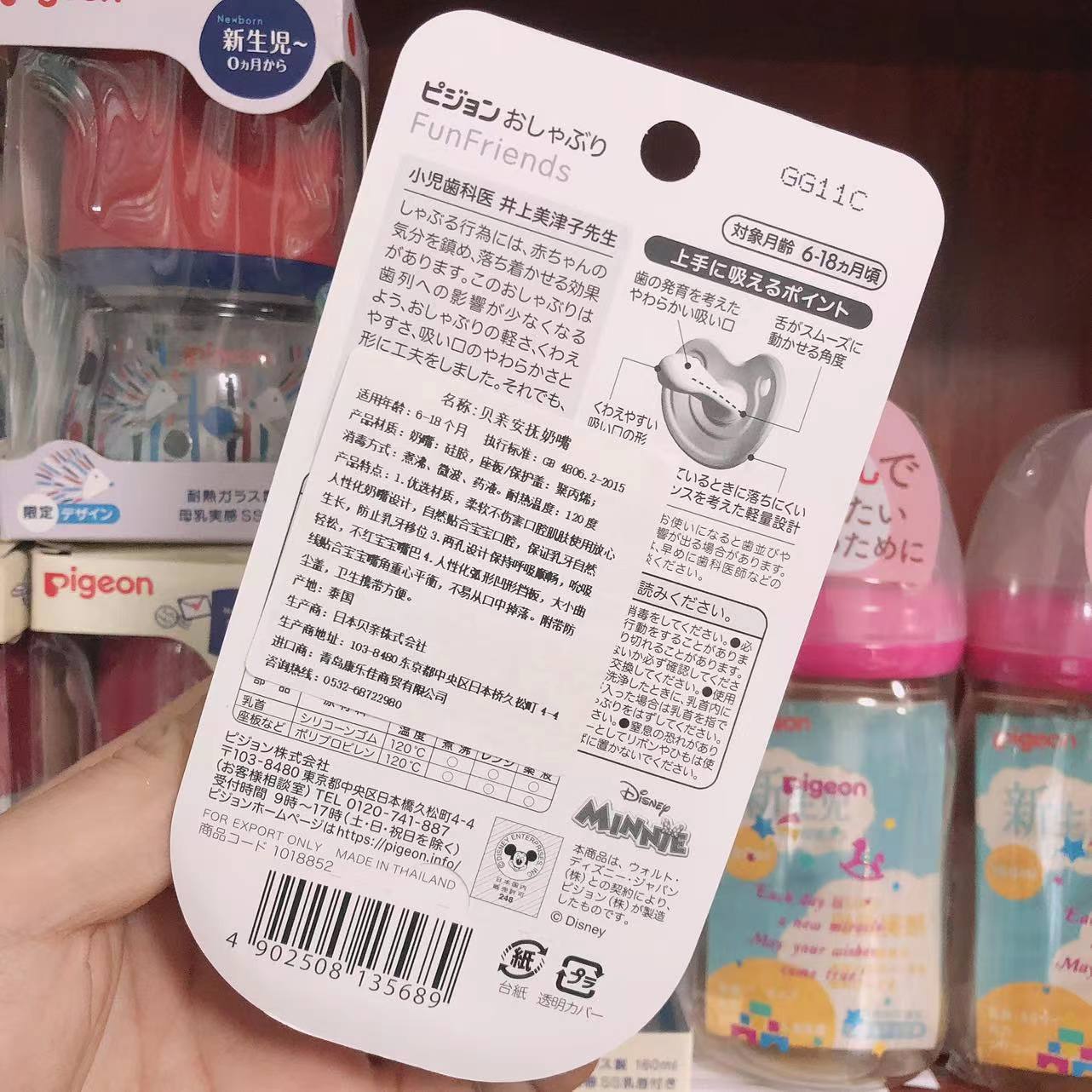 日本贝亲婴儿硅胶米妮安睡型奶嘴