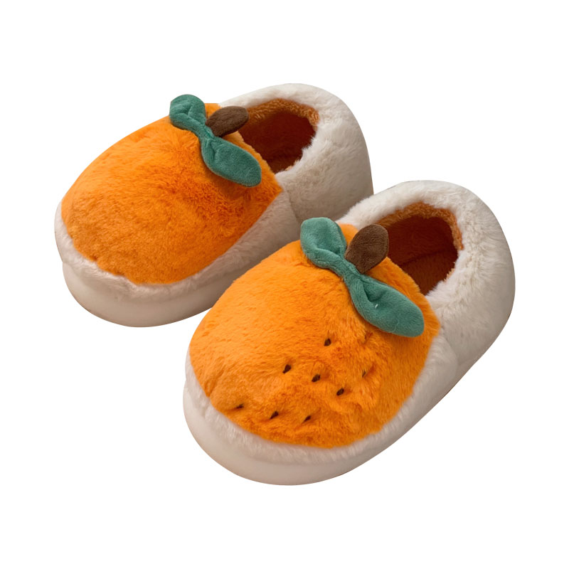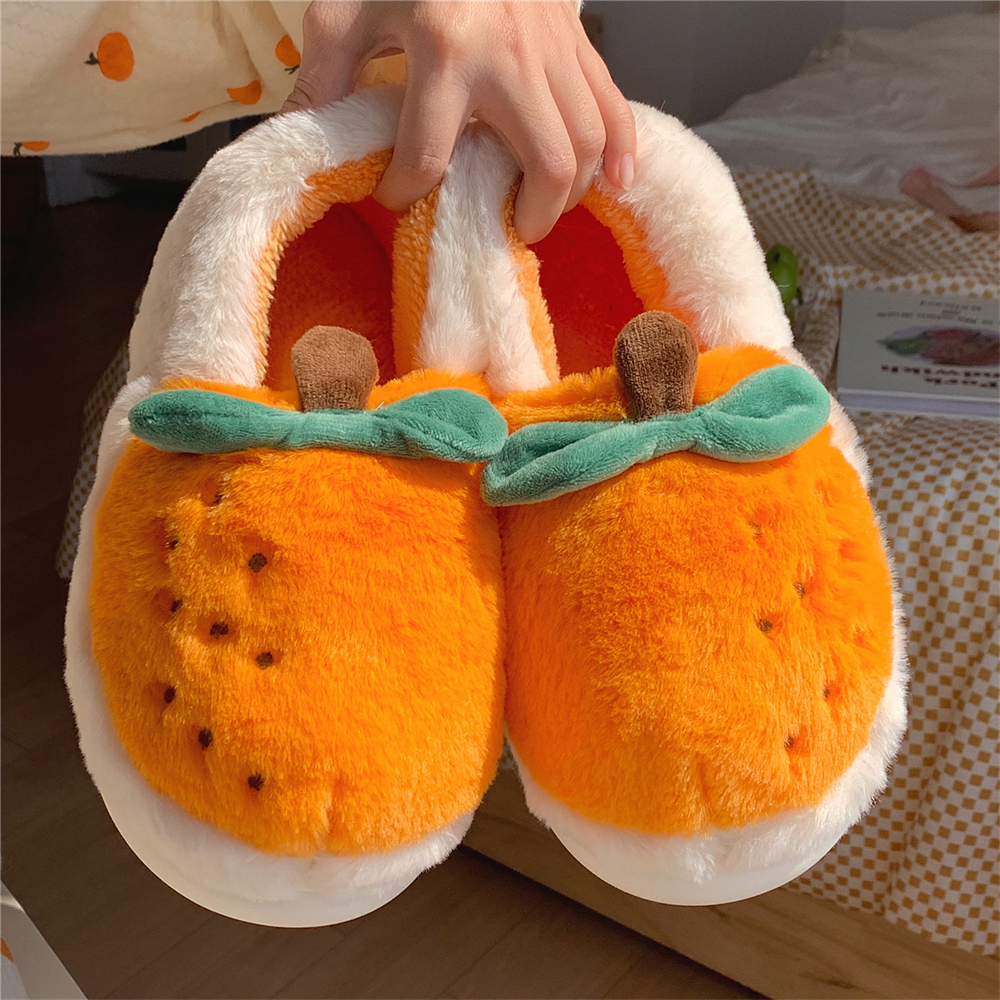 细细条 韩版ins可爱橘子棉拖鞋女冬季防滑厚底包跟保暖毛绒居家鞋