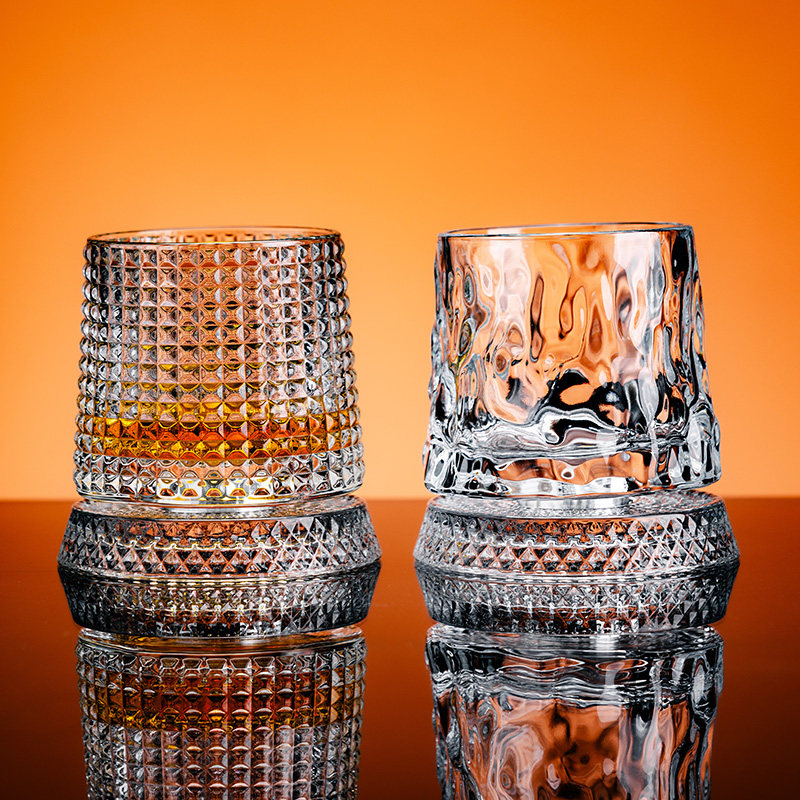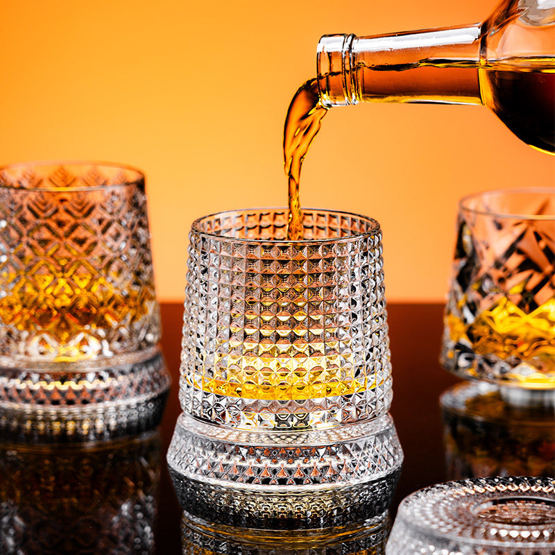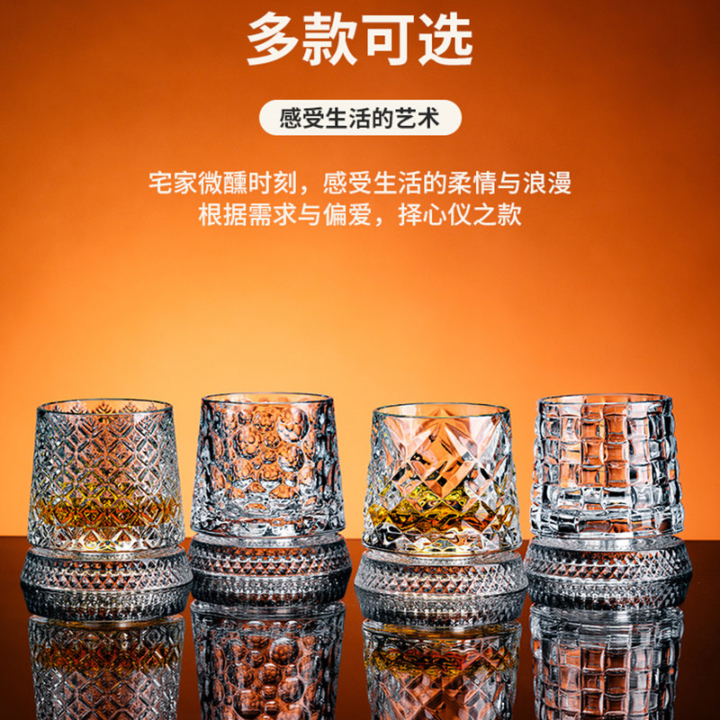 轻奢高档威士忌酒杯古典水晶杯不倒翁旋转解压啤酒杯高级感洋酒杯