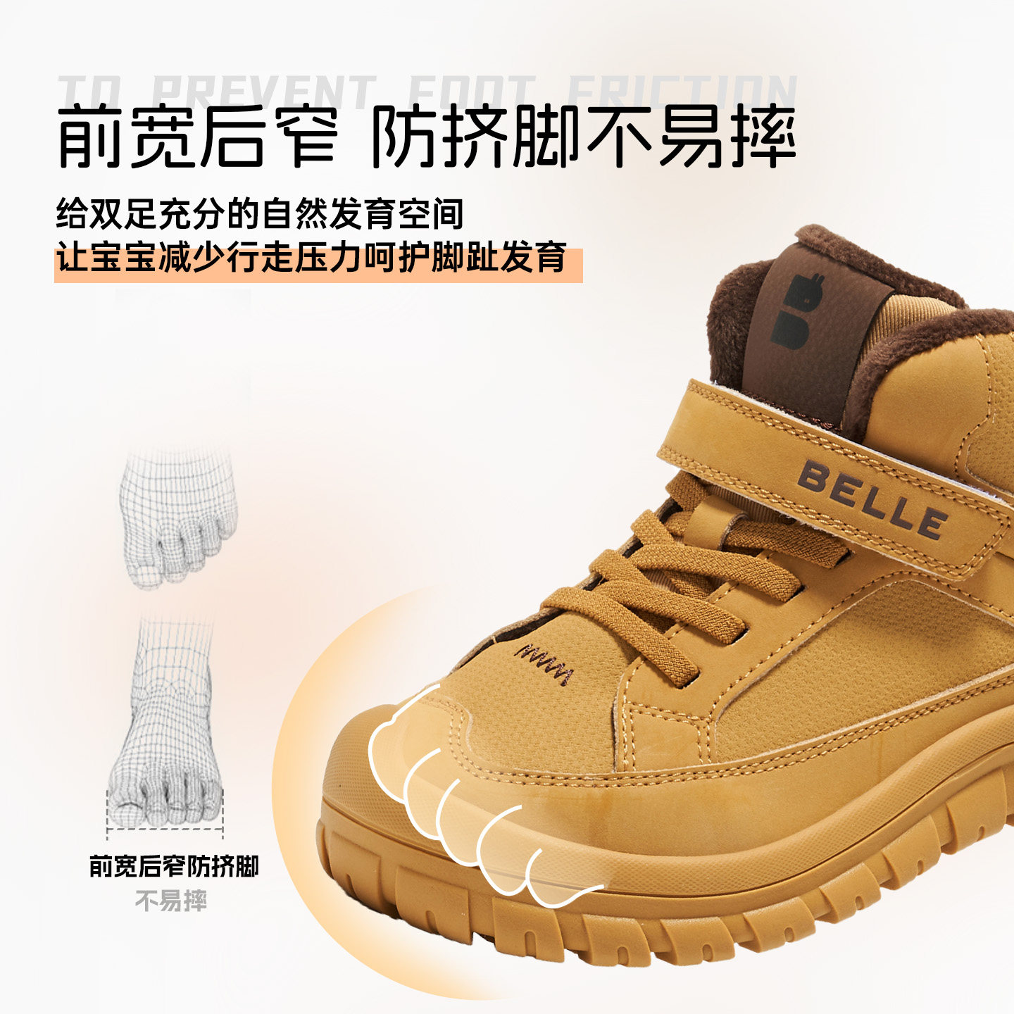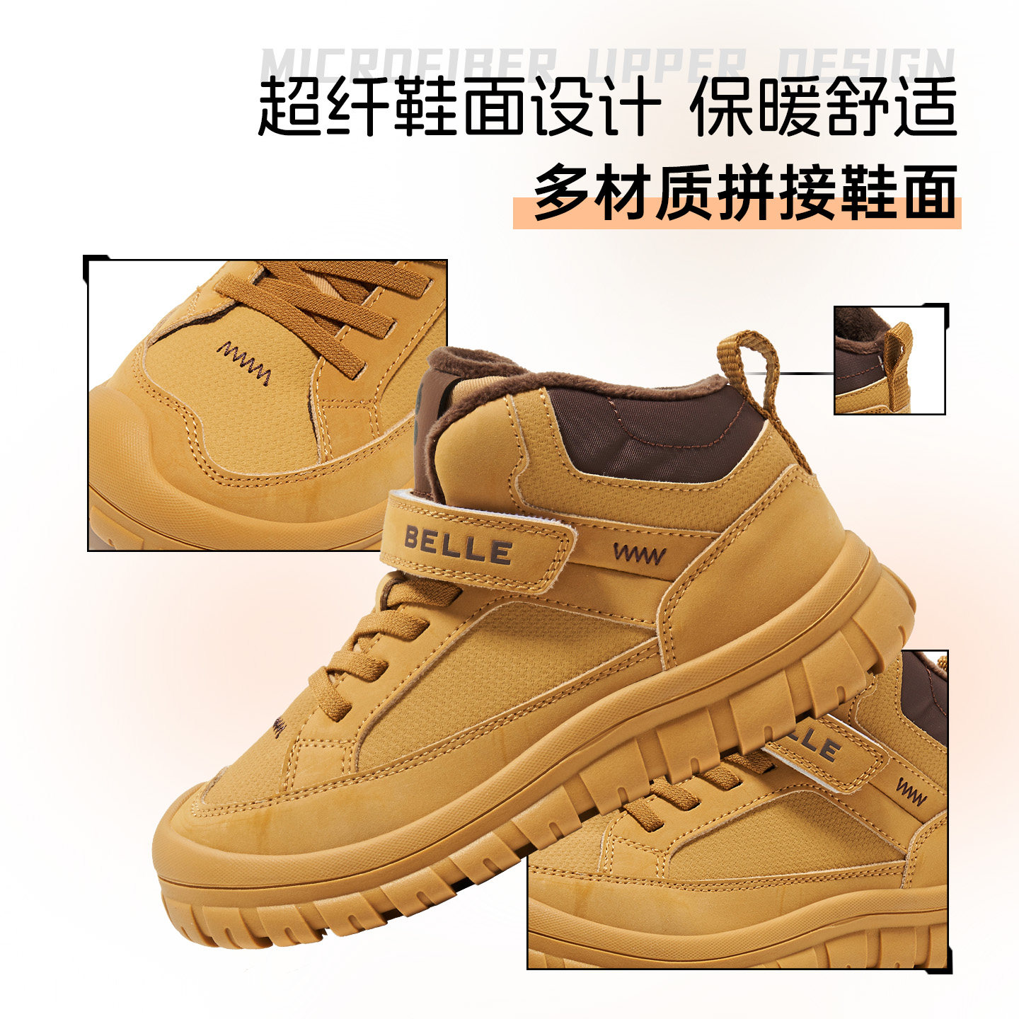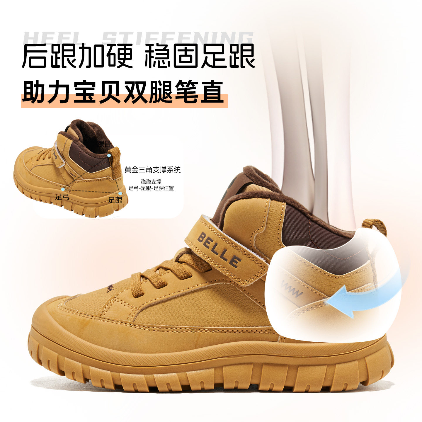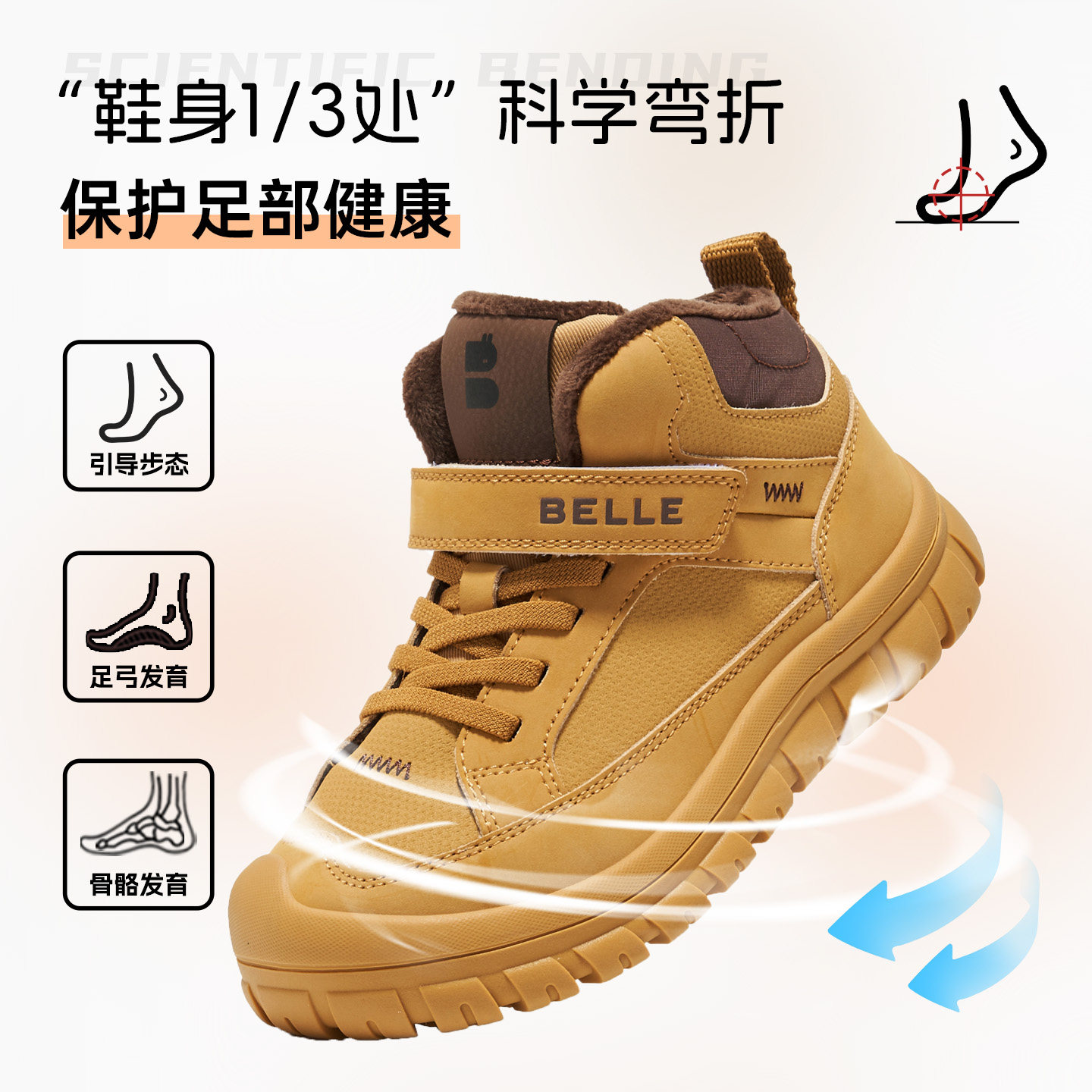 BELLE 百丽童鞋2025冬季新款魔术贴加绒保暖儿童户外高帮马丁靴