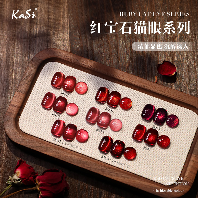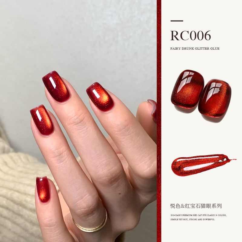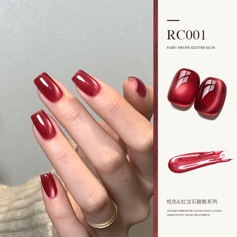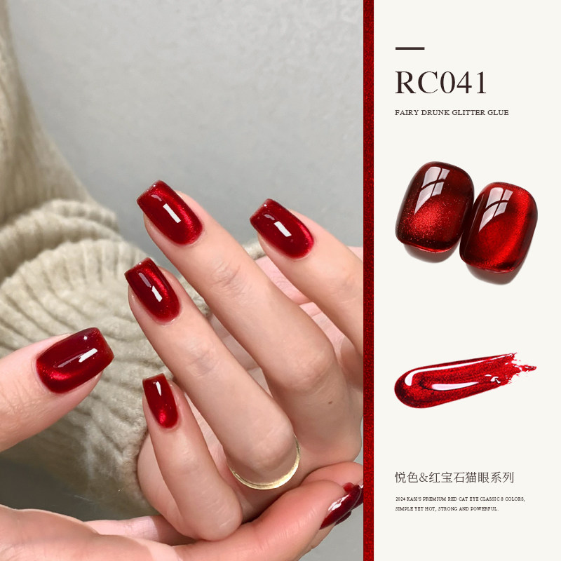 新年红色猫眼甲油胶2026年新款爆闪显白车厘子酒红玻璃珠美甲专用